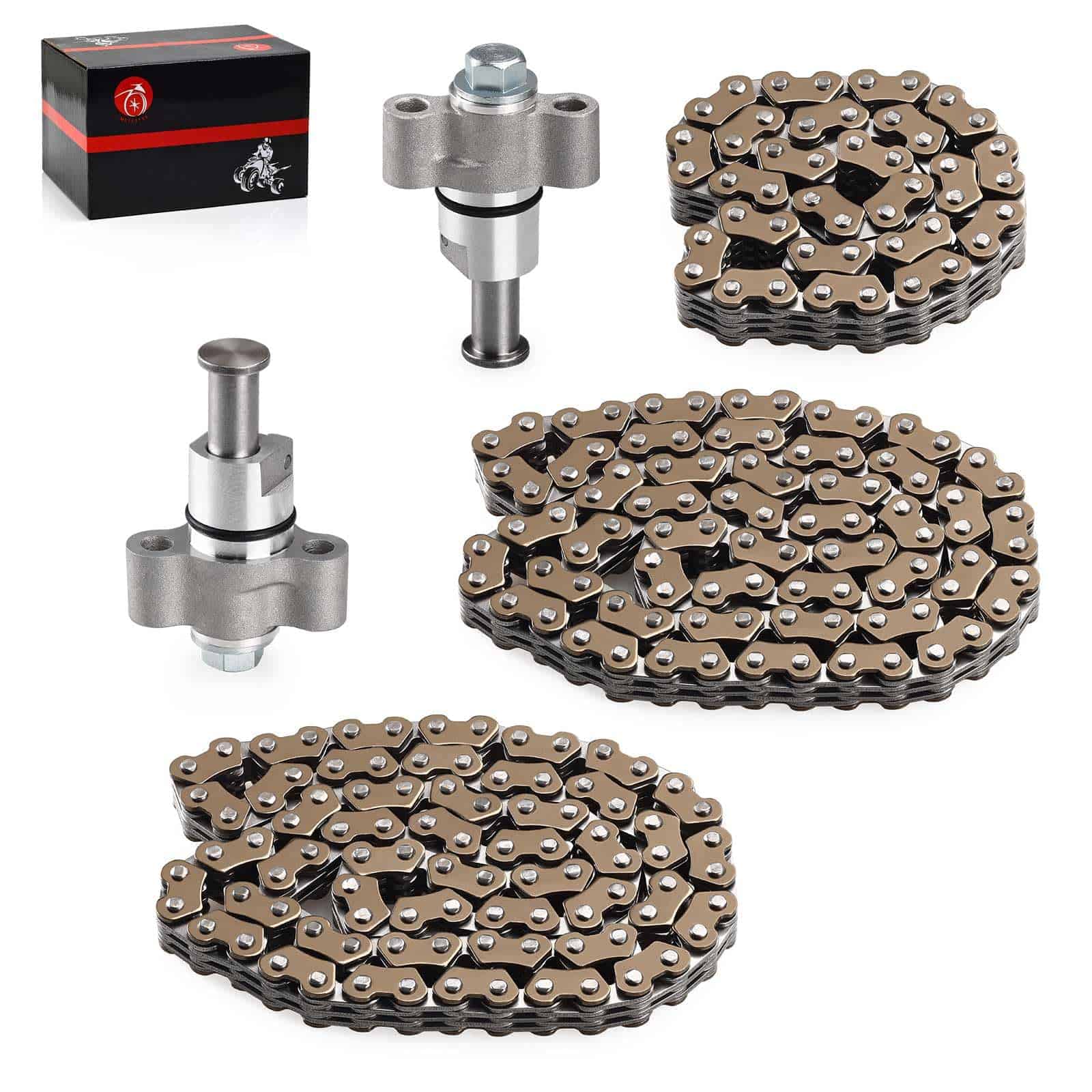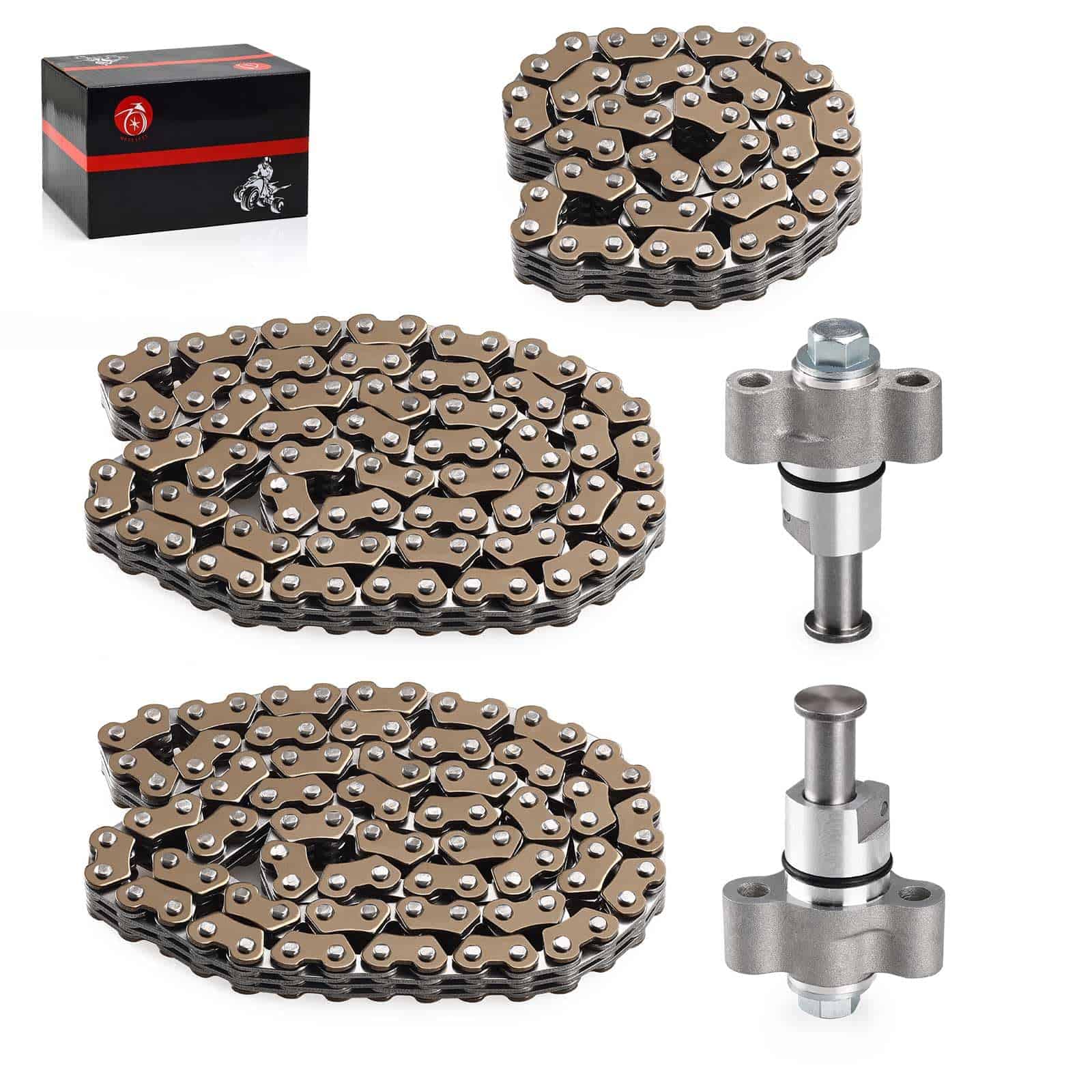 Este juego de cadenas de sincronización y tensor de levas es perfecto para varios modelos de Kawasaki, desde Brute Force hasta Teryx. Incluye todas las piezas necesarias para el reemplazo, con referencias de fabricante como 92057-0187, 92057-0074, 92057-0186, entre otros. Con nuestro servicio al cliente disponible las 24 horas, puede estar seguro de que recibirá la asistencia que necesita en caso de cualquier consulta o problema. Asegúrese de revisar la compatibilidad con su vehículo antes de realizar la compra para una instalación sin problemas y un óptimo rendimiento en su Kawasaki.