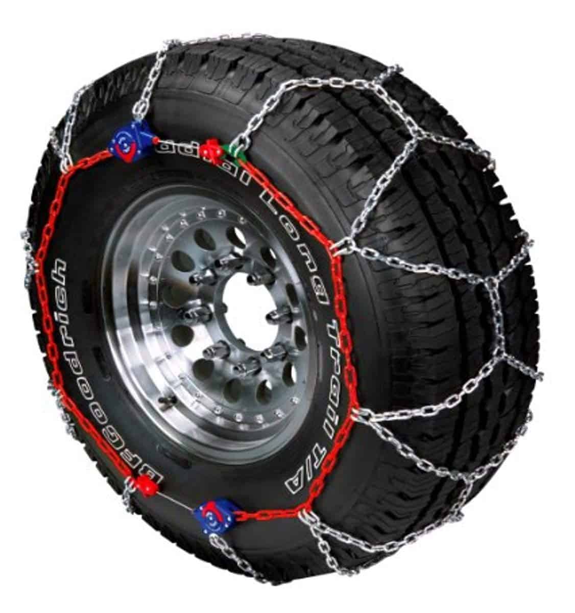 Auto Trac se puede instalar sin mover (o levantar con gato) el vehículo. El sistema patentado de ajuste con trinquetes se aprieta automáticamente mientras se conduce. ¡Simplemente conecte el cable interno, conecte los dos autoajustadores exteriores y conduzca! No son necesarios ni se recomiendan tensores de cadena adicionales. Auto Trac cumplirá con los requisitos de espacio de la Clase S en camionetas SUV y camionetas pickup, así como en automóviles de pasajeros normales (igualando las capacidades de la mayoría de nuestros productos de cable Z). Esto es posible gracias a un sistema de tensión patentado altamente efectivo. Los eslabones transversales de Auto Trac están hechos de acero aleado de manganeso, lo que les permite ser más cortos, estrechos y ligeros que los eslabones transversales convencionales. Esto reduce el desprendimiento durante la operación y proporciona más puntos de agarre. La sección transversal en forma de D de baja masa de los eslabones también contribuye a un desgaste más prolongado porque se reduce el impacto de los eslabones transversales en la superficie de la carretera y se aumenta la superficie de contacto con la carretera.