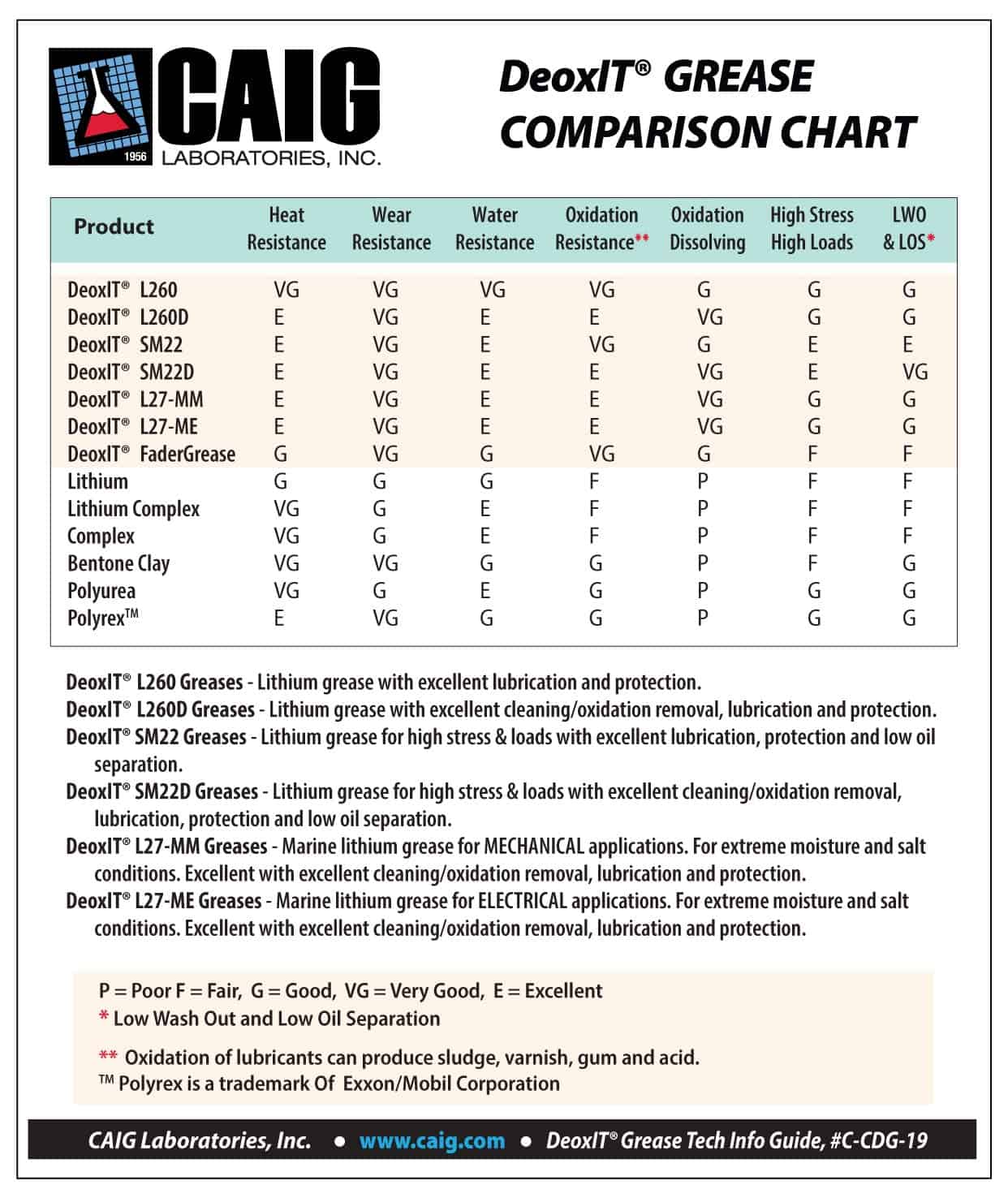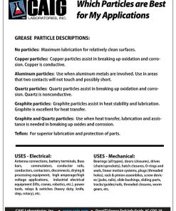 3. Grasa de alto punto de goteo, Rango de temperatura; -40 a 260 C. Las grasas mejoran el rendimiento y la confiabilidad de los contactos eléctricos y los componentes mecánicos que requieren lubricación precisa.