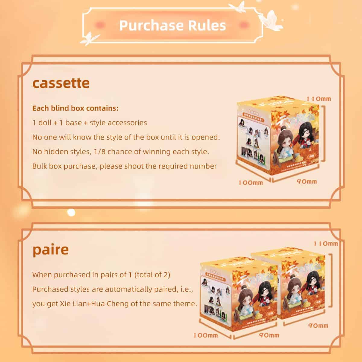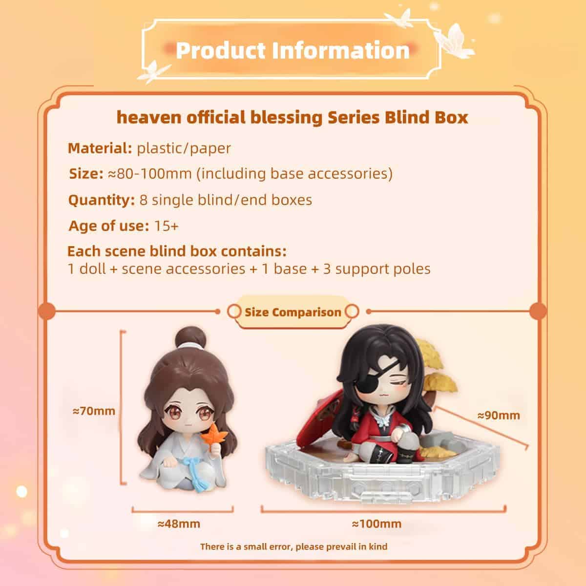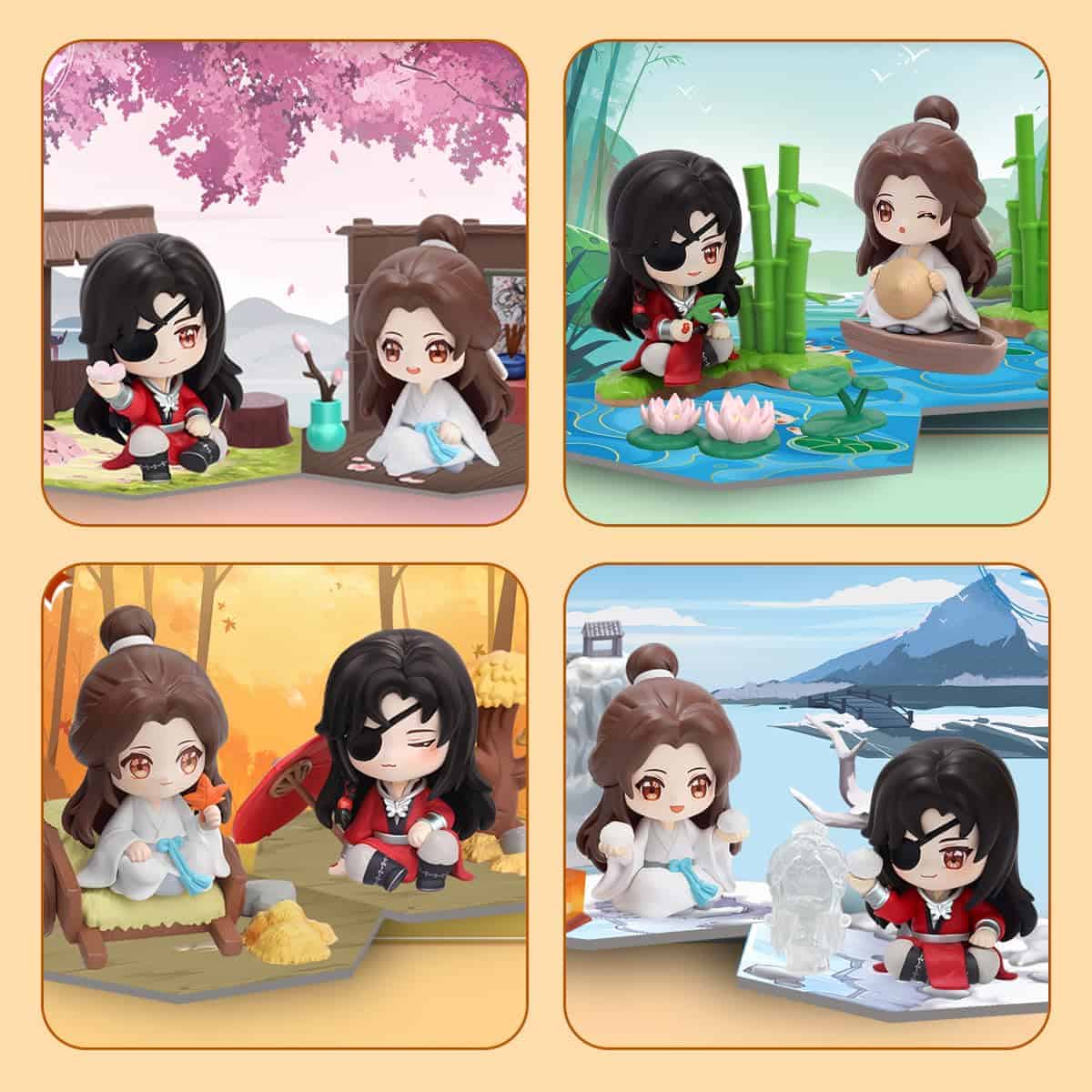 2. Los dos personajes son Hua Cheng y Xie Lian, y tienen un total de 4 Cajas Ciegas diferentes.