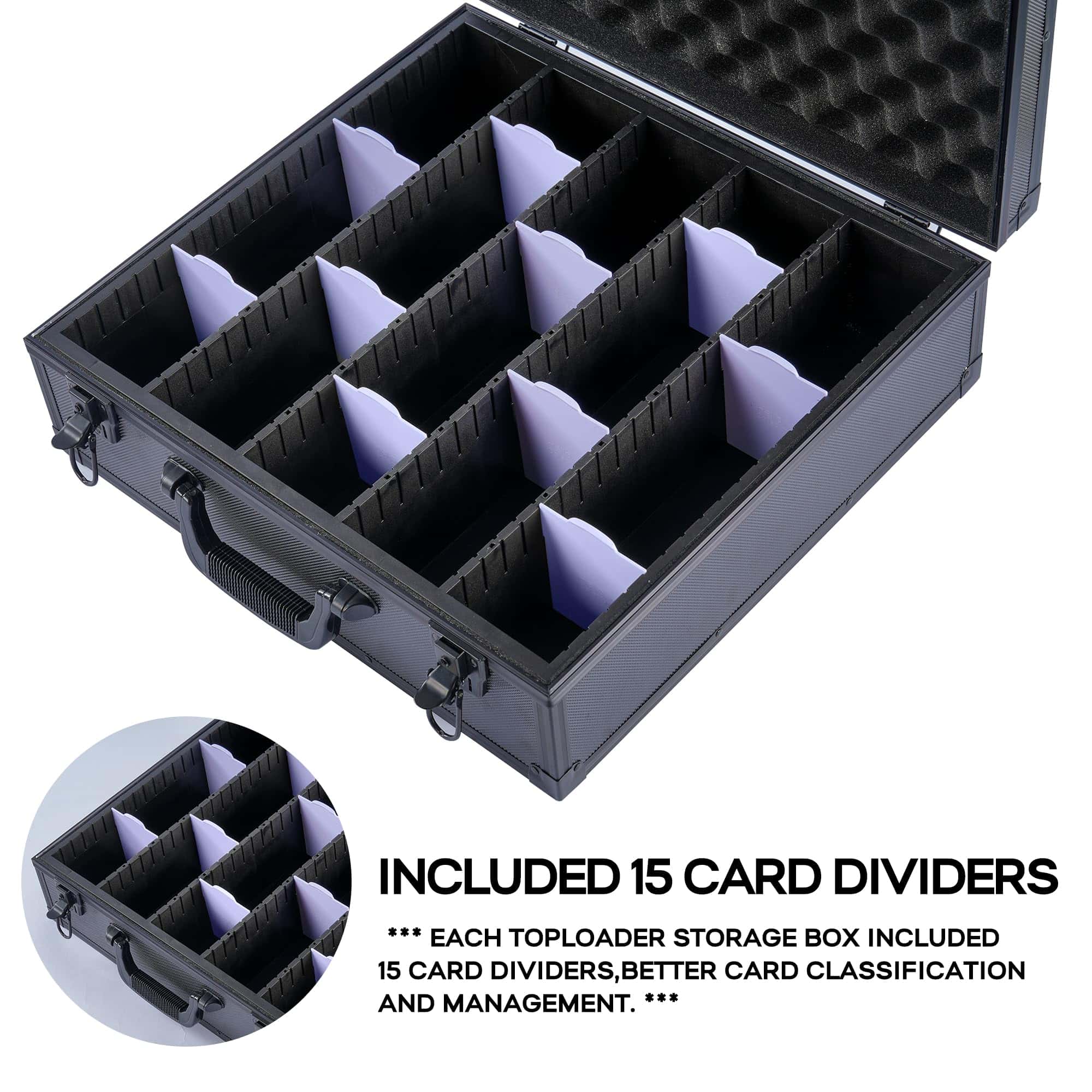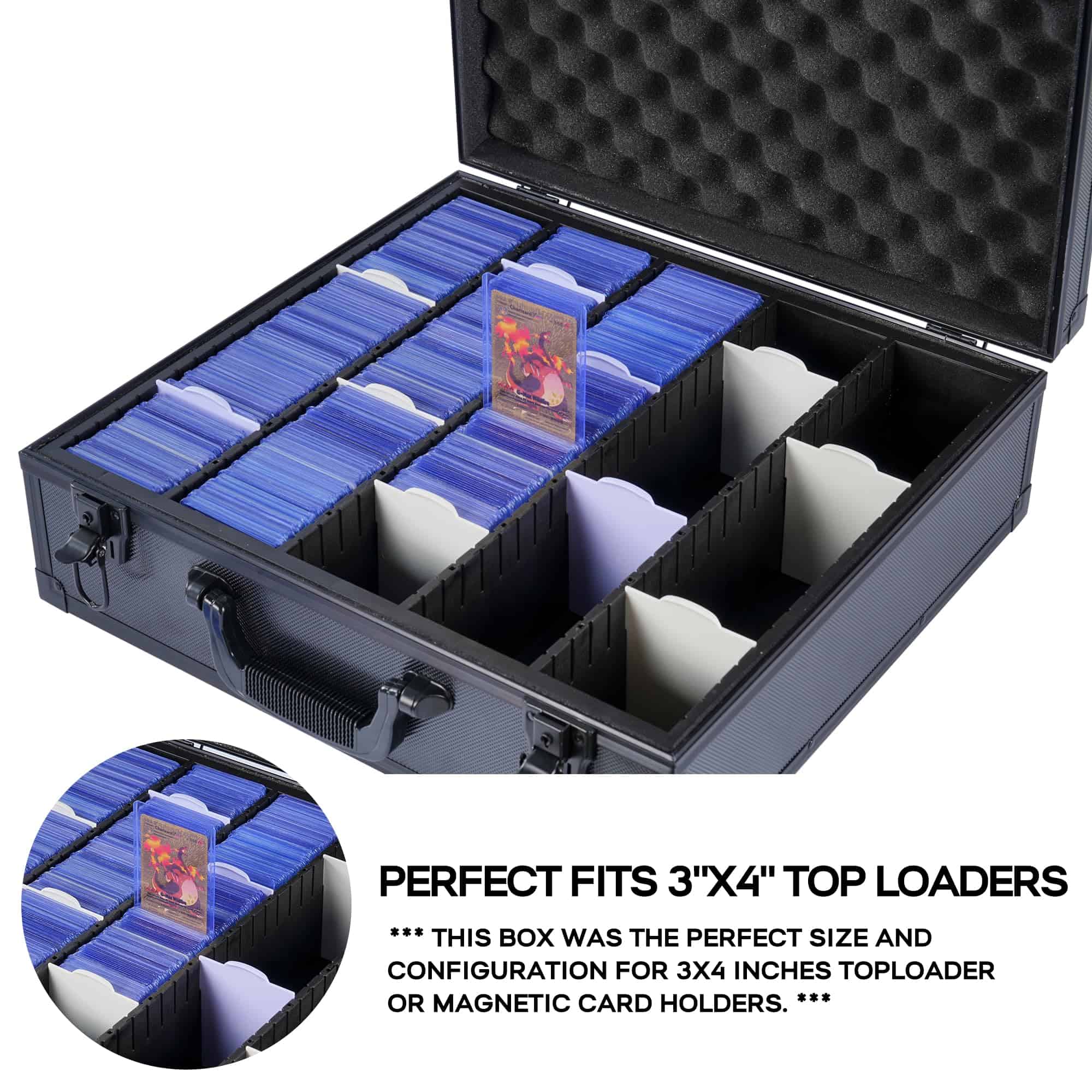 2.- Nuestra caja de toploader puede contener más de 1200 Top Loaders o más de 250 soportes para cartas magnéticas. (¡Cada caja de Toploader viene con 15 separadores de cartas!) La caja de almacenamiento de cartas de colección puede satisfacer las necesidades de colección de diferentes tipos de cartas.
