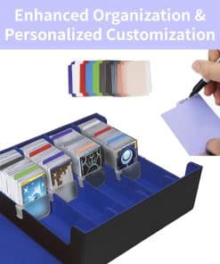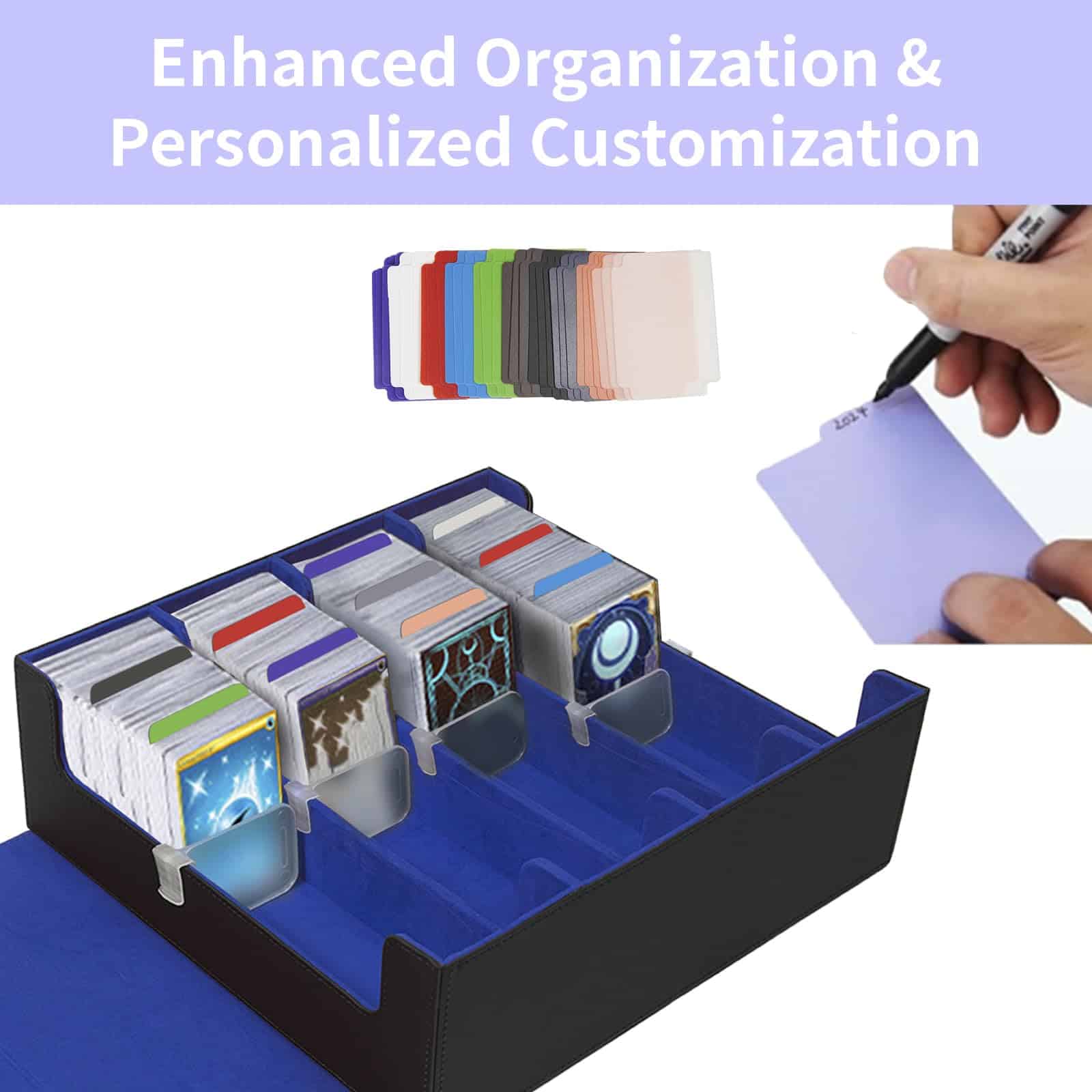 3. Separadores de almacenamiento de cartas mtg: Esta caja de cartas de intercambio está equipada con 30 separadores de colores que se pueden etiquetar, lo que facilita la organización y categorización de cartas y accesorios. Este arreglo de almacenamiento de cartas deportivas permite encontrar y recuperar rápidamente las cartas, mejorando la eficiencia.