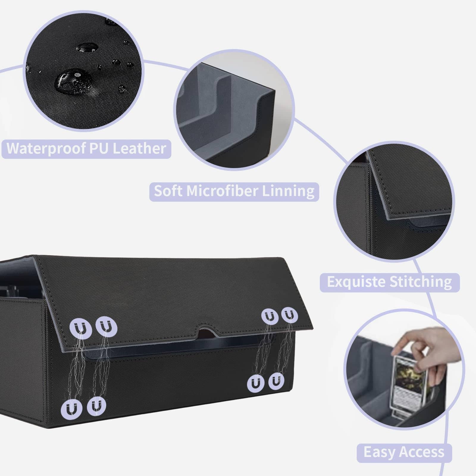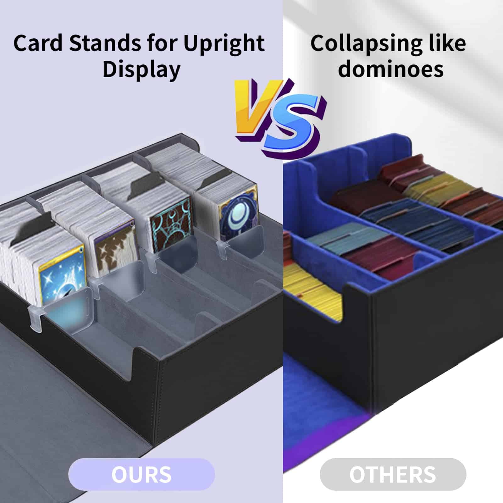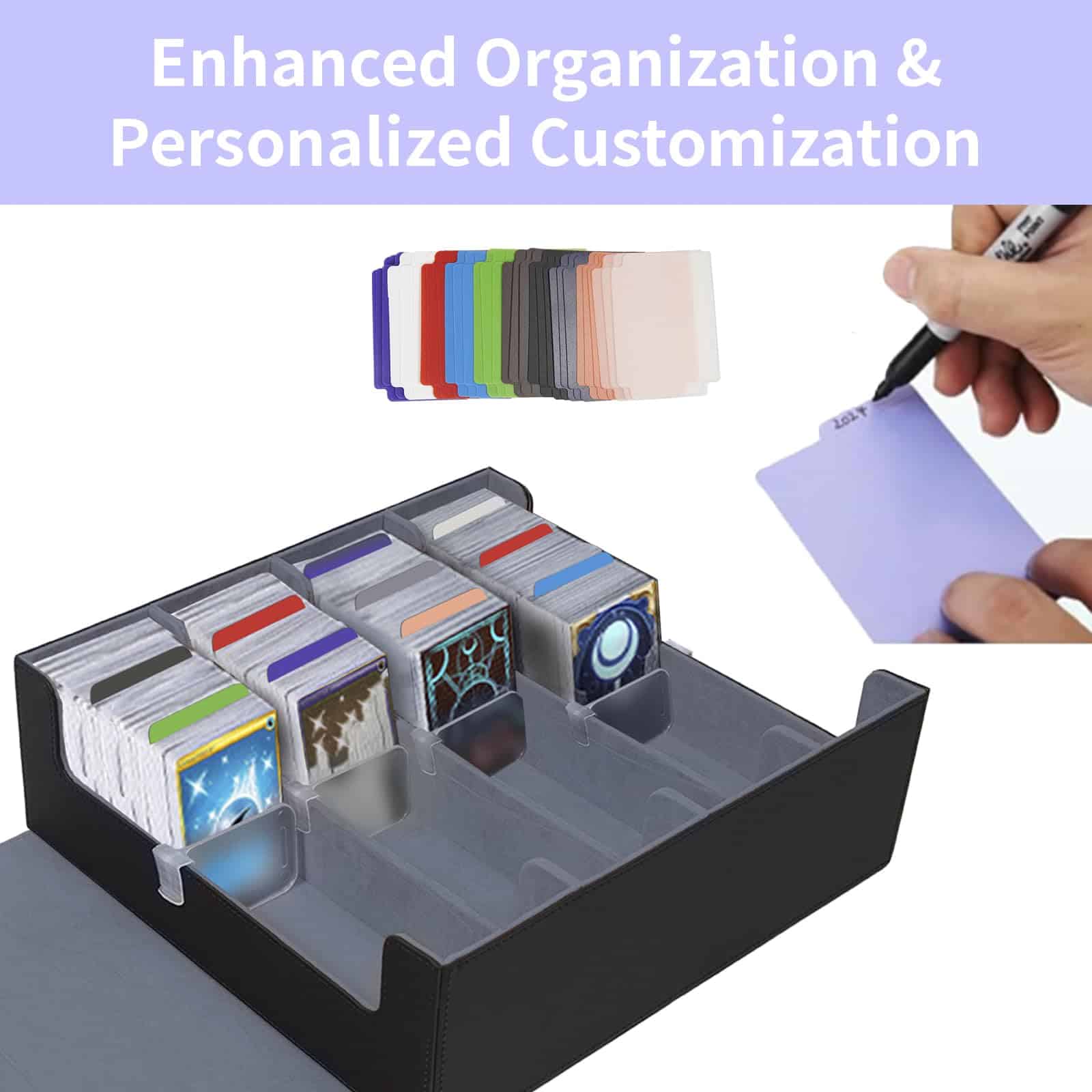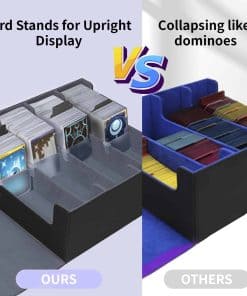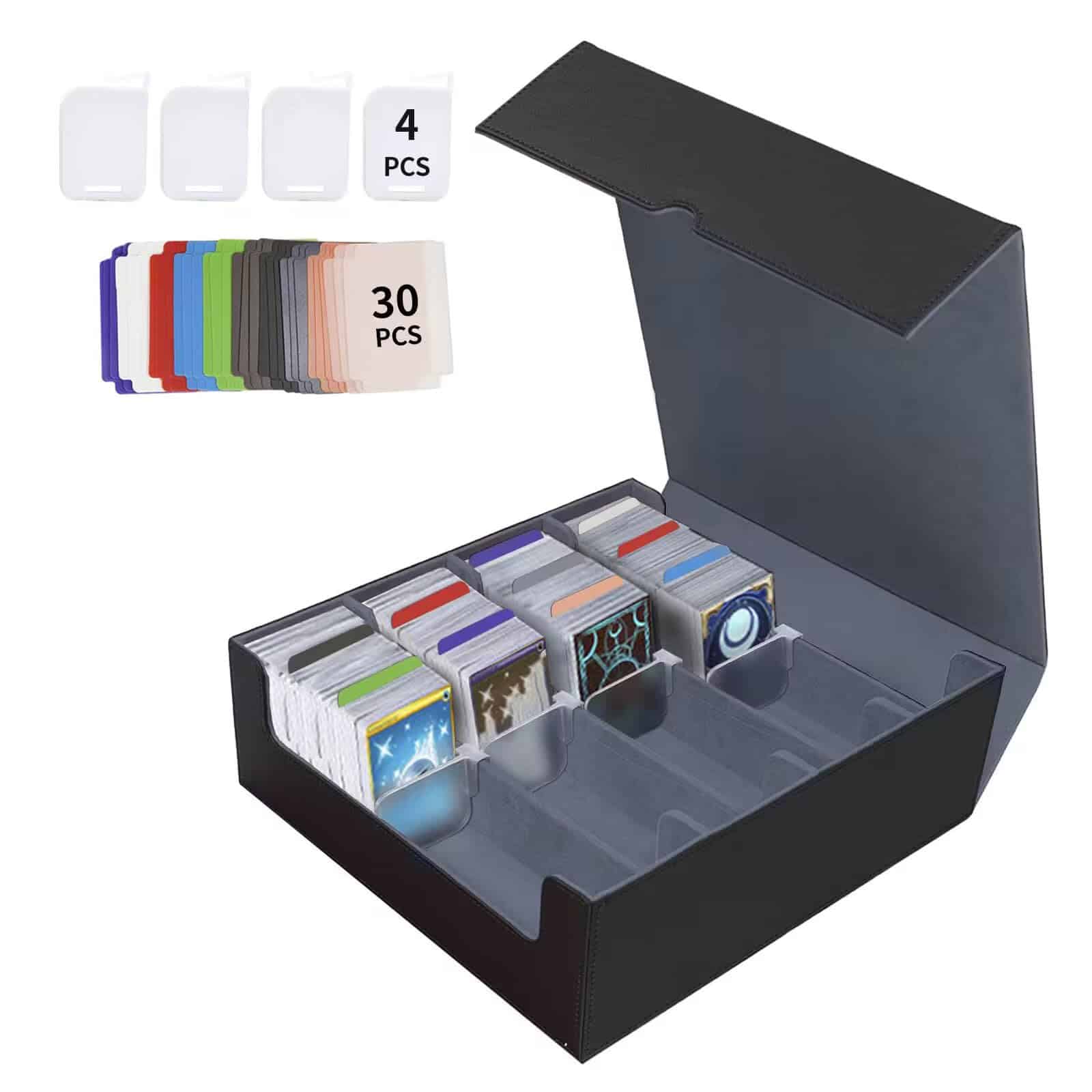 El caja de almacenamiento de cartas de intercambio QCZBH es la solución perfecta para mantener seguras y organizadas sus valiosas cartas coleccionables. Con una capacidad de más de 3000 cartas, esta caja de mazo mtg cuádruple es ideal para los entusiastas de los juegos de cartas. Fabricada con un resistente material de cuero PU, esta caja de almacenamiento de cartas ofrece una protección duradera contra golpes y arañazos, mientras que el suave forro interior garantiza que sus cartas se mantengan en condiciones impecables. Los 30 separadores coloridos incluidos facilitan la organización y categorización de las cartas y accesorios, lo que le permite encontrar y recuperar rápidamente lo que necesita. Además, los soportes de la caja de almacenamiento de cartas de béisbol garantizan que sus cartas se mantengan en posición vertical, protegiéndolas de daños y evitando que se caigan como fichas de dominó. Ya sea que juegue The Gathering, Dragon Shield, One Piece, Duel Masters o coleccione cartas deportivas como fútbol, baloncesto y béisbol, esta caja de almacenamiento de cartas de intercambio es una elección inteligente para mantener sus cartas seguras y organizadas. ¡Contáctenos para obtener ayuda adicional y garantizar su satisfacción con su compra!