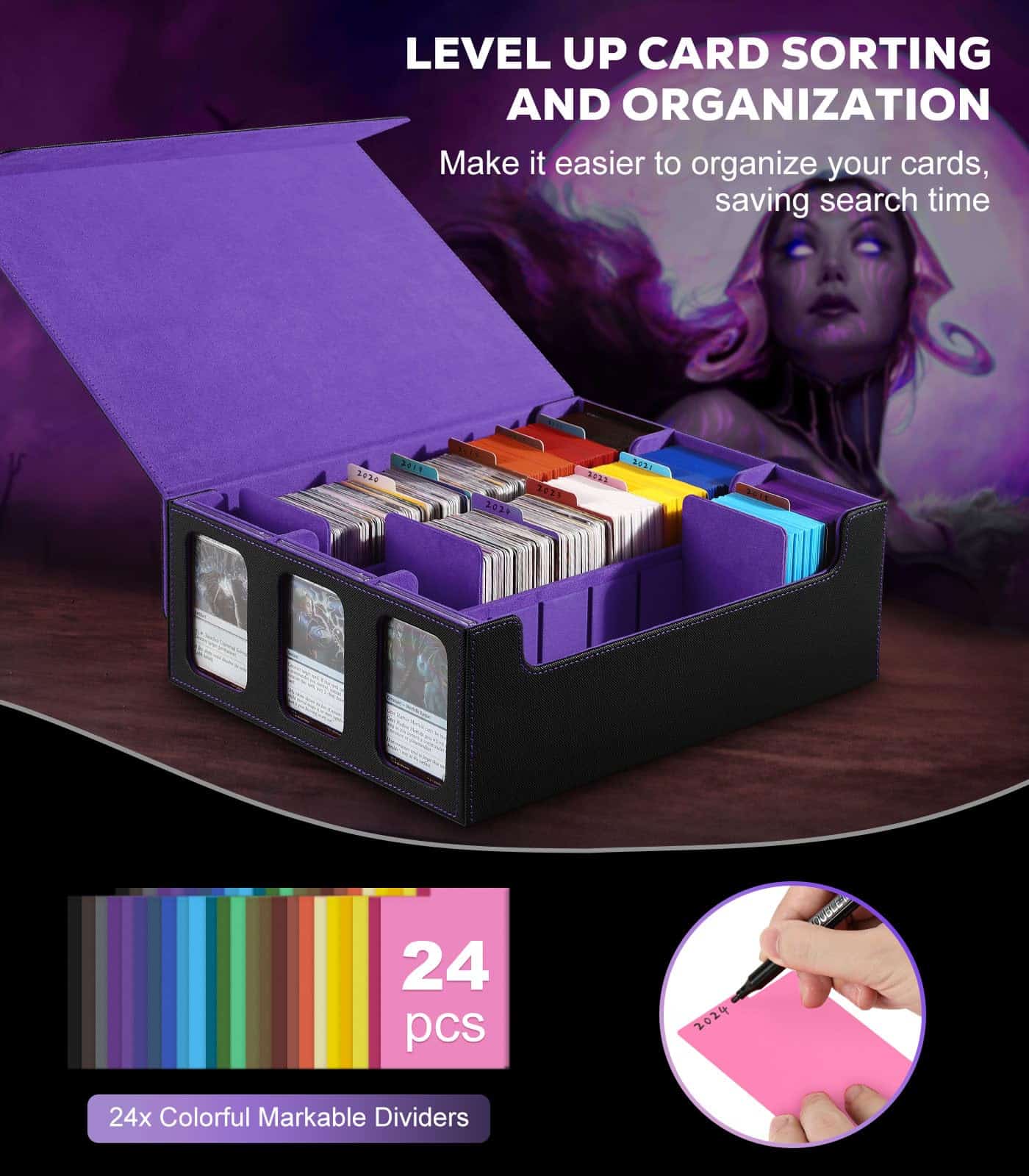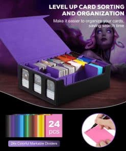 Viene con 24 pestañas divisoras coloridas para ayudarte a separar diferentes tipos de cartas de juego, facilitando su organización y clasificación.