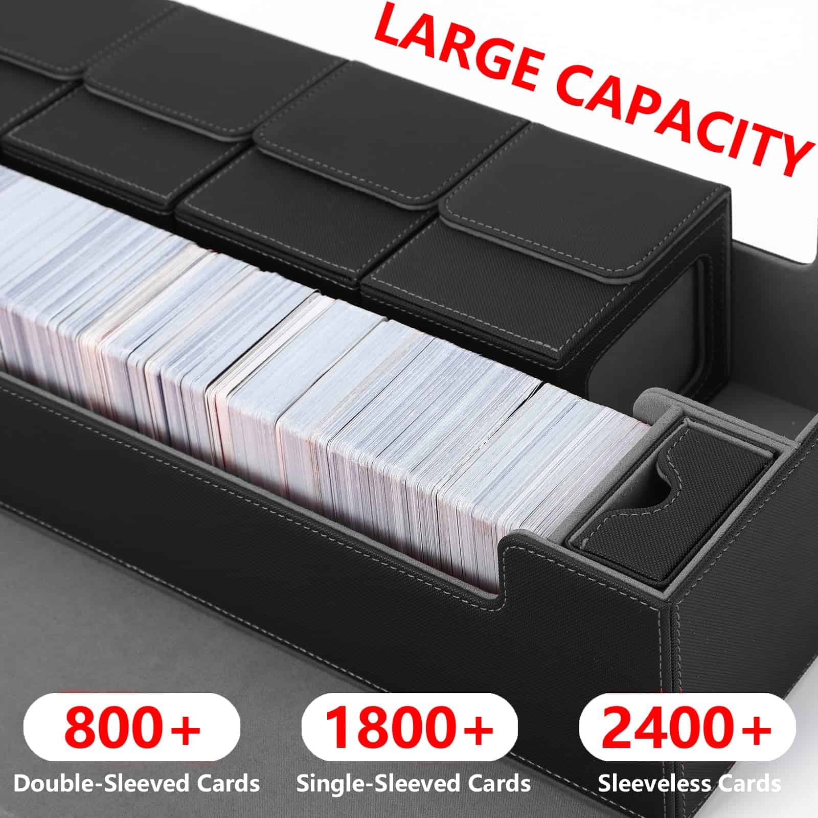 4. Caja de colección de cartas versátil – Diseñadas para jugadores, nuestras cajas de cartas de mazo son perfectas para una variedad de cartas de juego. Compatible con Magic: The Gathering, One Piece, Pokémon, YuGiOh!, Duel Masters y cartas deportivas como fútbol, baloncesto y béisbol en fundas protectoras, así como cartas de Dominion y expansiones, y más coleccionables.