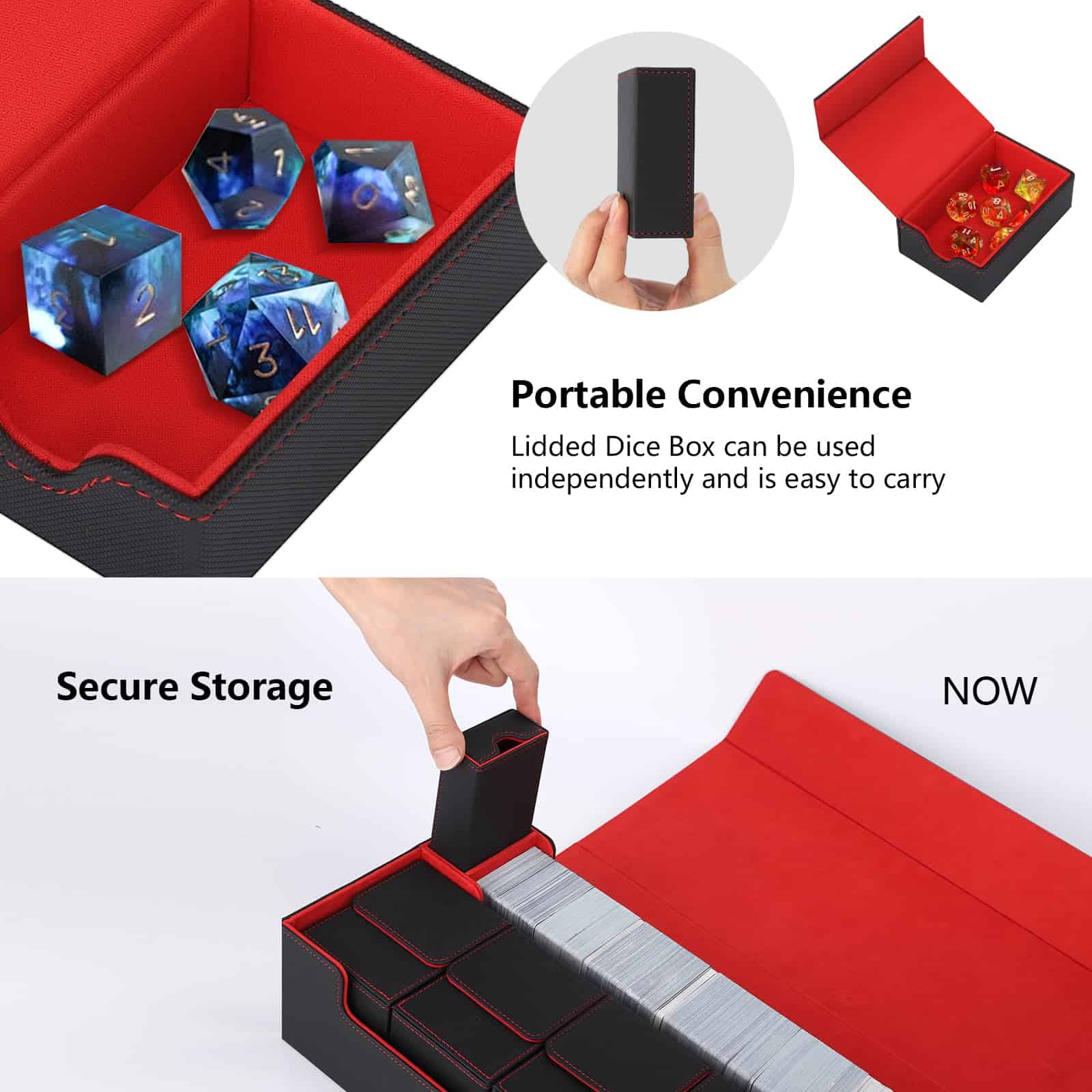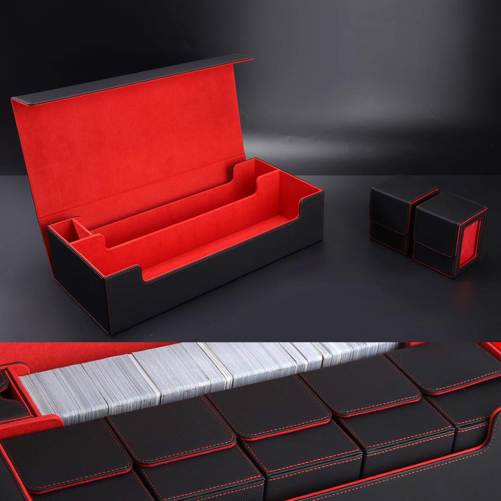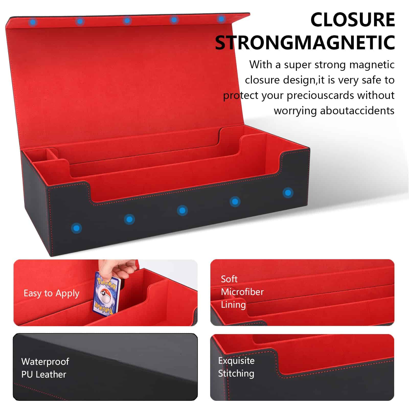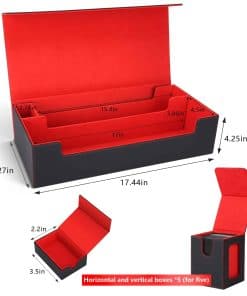 3. Separadores para una organización sencilla – Este almacenamiento de cartas está equipado con 4 separadores de cartas negras, lo que facilita organizar y categorizar cartas y accesorios. Esta configuración permite una rápida identificación y recuperación de cartas, ahorrando tiempo y mejorando la eficiencia.