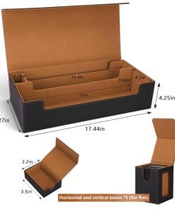 3. Separadores para una organización sencilla – Este almacenamiento de cartas está equipado con 4 divisores de cartas negras, facilitando la organización y categorización de cartas y accesorios. Esta configuración permite una identificación rápida y recuperación de cartas, ahorrando tiempo y mejorando la eficiencia.