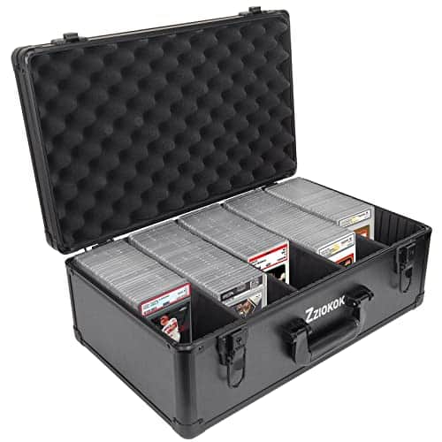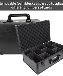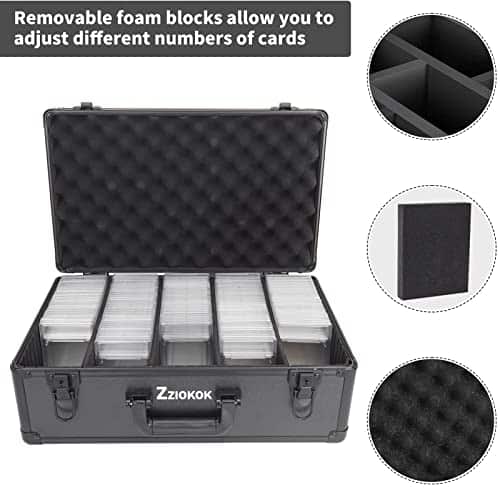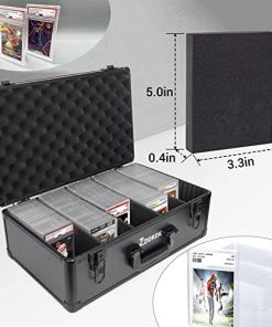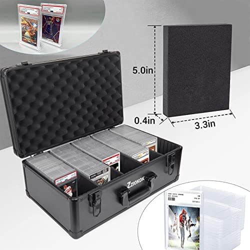 Caja de Almacenamiento de Tarjetas Clasificadas 200 BGS SGC PSA, Compatible con Tarjetas Clasificadas PSA y BGS, Caja de Exhibición Impermeable con Tableros de Inserto EVA Removibles y Orificios para Candado, Caja de Almacenamiento de Tarjetas de Aluminio con capacidad para 240 tarjetas clasificadas, 2500+ cartas de juego. Diseñada con un elegante marco de aluminio negro con un panel ABS negro único y un asa ligera de fácil transporte. Incluye 2 candados con llaves de repuesto. Cierre hermético y a prueba de agua con sello de o-ring. Válvula de liberación de presión integrada.