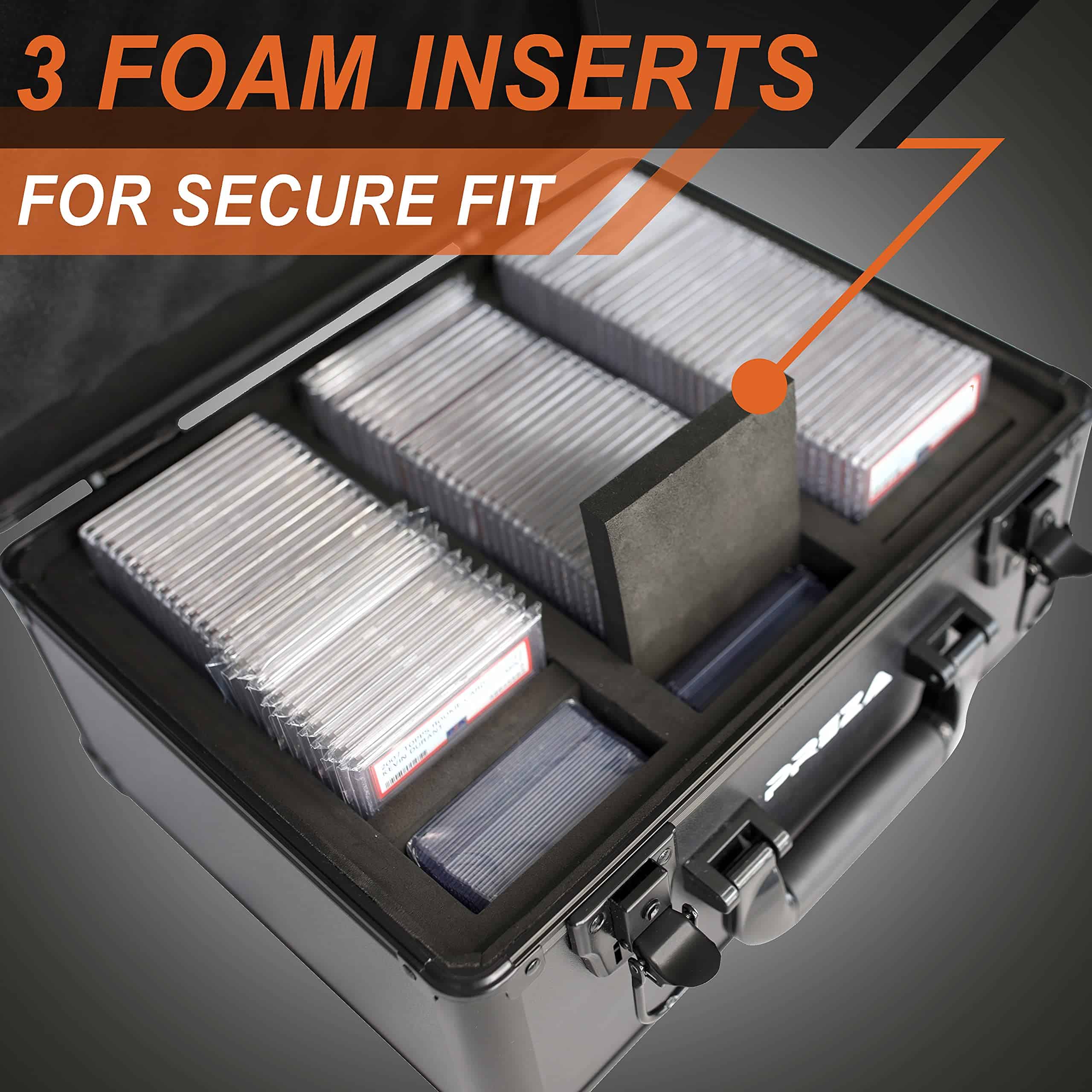 3. Seguro: Evite que sus tarjetas se deslicen con nuestros 3 insertos de espuma que crearán un ajuste seguro para todas sus tarjetas deportivas graduadas.
