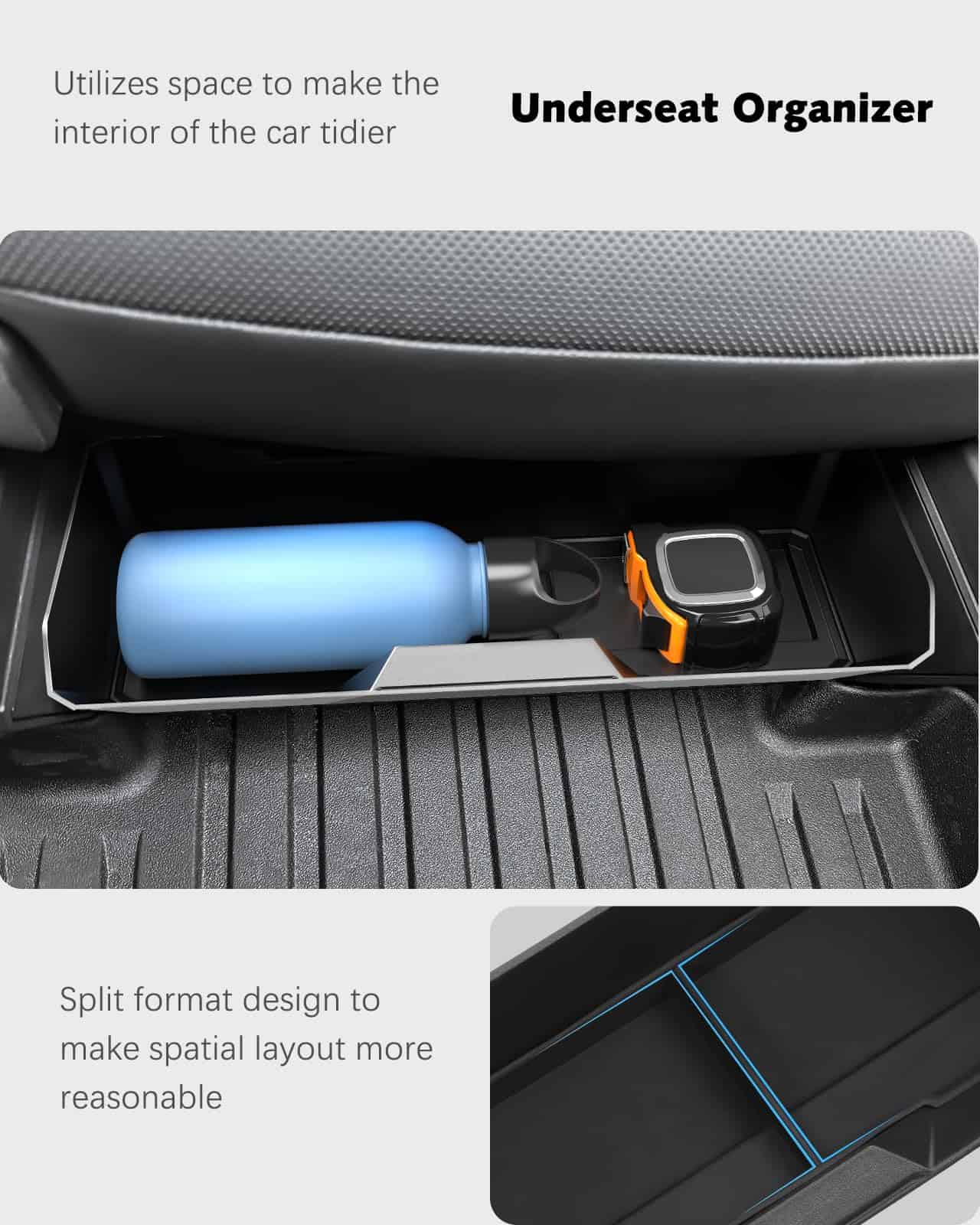 4. Organizador de vehículos: Este organizador de cybertruck hace un buen uso del espacio debajo del asiento que permite una organización efectiva y gestión de varios artículos y mejora la utilización del espacio.