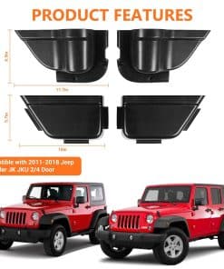 Ideas de la compañía: SQQP ofrece una amplia gama de accesorios para mejorar y actualizar tanto el aspecto como la funcionalidad de su vehículo. Apreciamos sinceramente su decisión de comprar nuestros productos, siempre nos comprometemos a proporcionar productos decorativos automotrices de alta calidad y seguros y un servicio excelente, profesional y al cliente. ¿Estás cansado de tener un ambiente desordenado en el automóvil? ¿Tu automóvil tiene espacio de almacenamiento insuficiente? La caja de almacenamiento delantero y trasero para la puerta de SQQP proporciona un ambiente limpio y cómodo para sus filas delanteras y traseras. Perfecto para guardar pequeño cambio, llaves, teléfono, cable de carga, banco de energía pequeño y otros objetos pequeños, mejora tu comodidad de viaje para entregarte una agradable experiencia. Descripción del artículo: Ajuste para Jeep Wrangler JK JKU 2/4 puertas 2011-2018. Condición: 100% nuevo. Material: Fabricado en plástico ABS de alta calidad. Características: Hecho de plástico ABS y proceso de pulido para protección contra deformaciones, alta temperatura, desgaste y corrosión, no se romperá ni agrietará fácilmente durante el uso. En comparación con la instalación tradicional de cinta de doble cara y broches, las cajas de almacenamiento mejoradas de SQQP adoptan el método de fijación con tornillos para hacer la instalación del producto más fuerte y duradera. Esta caja de almacenamiento de reemplazo de la red de la puerta solo necesita unos minutos para instalar. Reemplaza la red de la puerta de Jeep, puede almacenar llaves, teléfonos, cargadores, joyas, chicles, ayuda a que nuestro automóvil esté organizado, lo más importante, mantener al conductor y al pasajero disfrutando del placer y la relajación del viaje. Construcción premium ultraduradera, resistente al agua, diseño fácil de limpiar. Instalación: Puerta delantera: Instalación de tornillo. Puerta trasera: Instalación de broches largos. Paquete: 2 cajas de almacenamiento delanteras y 2 traseras. SQQP tiene otros accesorios interiores universales, por favor, explore nuestra tienda en detalle. Encontrará más accesorios automotrices para su satisfacción.