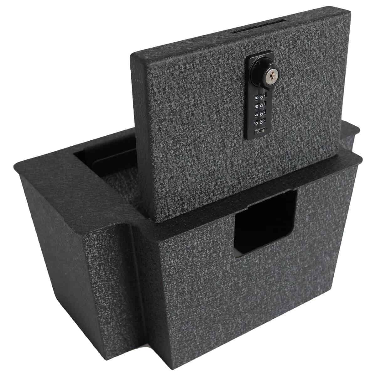Esta caja de almacenamiento central segura es perfecta para aquellos propietarios de Chevrolet Silverado 1500, GMC Sierra 1500, GMC 2500 y 3500 2024 que desean mantener sus objetos de valor seguros mientras viajan en sus camiones. Equipada con una cerradura de combinación de 4 dígitos, esta caja de almacenamiento central proporciona una capa adicional de seguridad para tus relojes, bienes peligrosos y otros objetos valiosos. Fabricada con acero laminado en frío resistente, esta caja segura tiene un recubrimiento antioxidante en el exterior para evitar la oxidación y garantizar una larga vida útil. El componente de bloqueo está completamente soldado y cuenta con bisagras anti-palanca ocultas para brindar máxima protección. La instalación de esta caja de almacenamiento central es simple y rápida, ya que los agujeros están reservados de manera precisa, lo que permite que se complete en tan solo 10 minutos. Con un servicio postventa amigable disponible las 24 horas del día, los 7 días de la semana, puedes estar seguro de que cualquier pregunta o problema que puedas tener será atendido con prontitud. Protege tus objetos de valor con esta caja segura central para camiones.