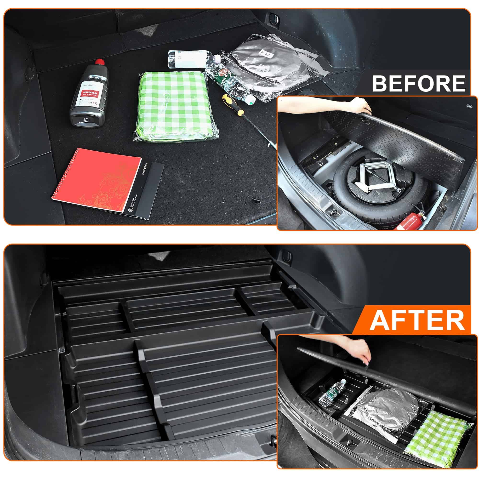La caja de almacenamiento oculta de nuestro SUV para accesorios Toyota RAV4 proporcionará el espacio adicional que necesita para mantener su maletero organizado y con fácil acceso. Fabricado con material ABS de alta calidad, este organizador de maletero es resistente, duradero y resistente al agua y al aceite, lo que facilita su limpieza. Su diseño especializado y ajuste perfecto lo convierten en una opción ideal para su Toyota RAV4 2019-2024. Además, la instalación es rápida y sencilla, sin necesidad de perforar agujeros ni usar accesorios adicionales. Con nuestra garantía sin preocupaciones, puede estar seguro de que recibirá un producto de alta calidad y un excelente servicio al cliente.