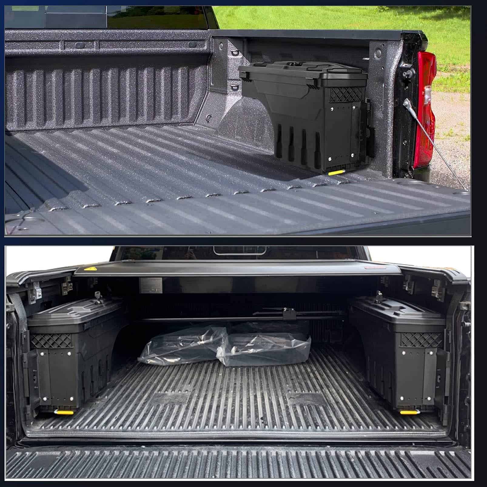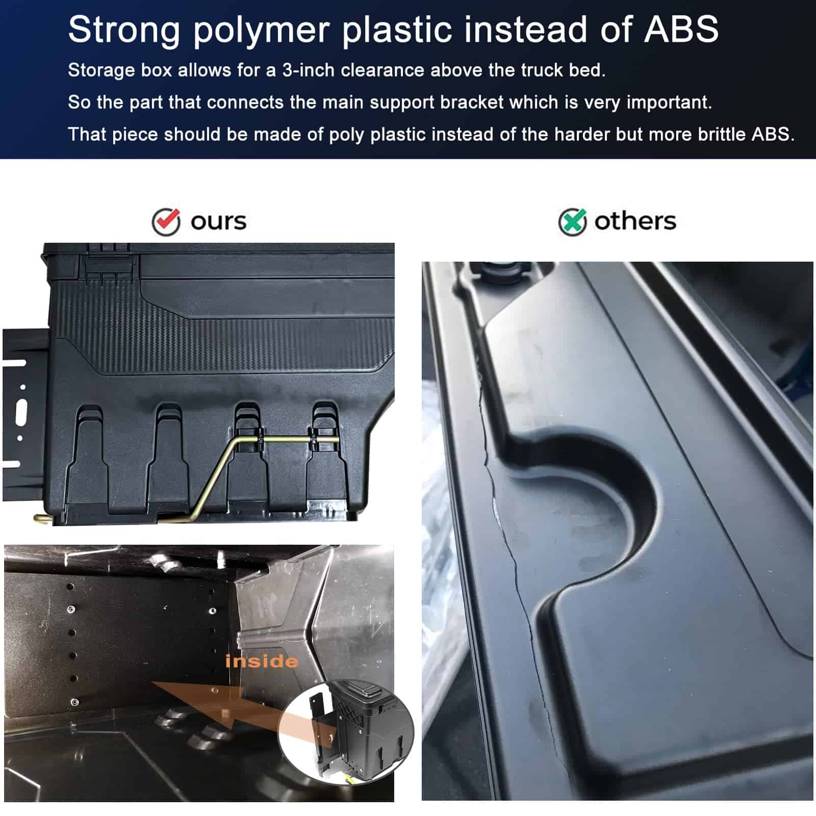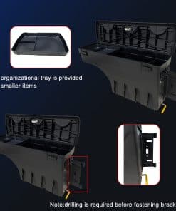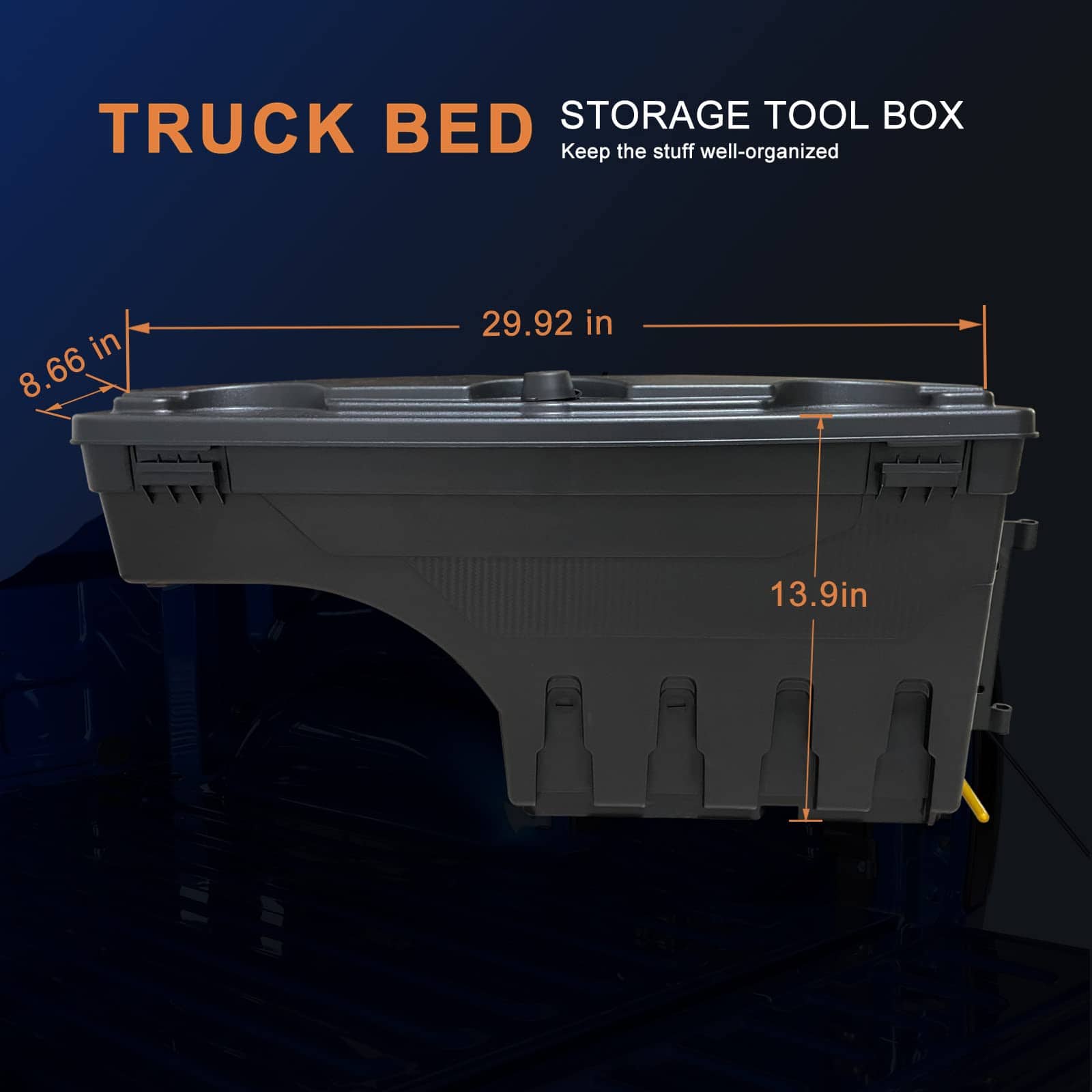 1. Solución de almacenamiento perfecta para el espacio de la cama del camión: Evite sacrificar el espacio del piso para mantener las herramientas bien organizadas, y no es necesario inclinarse o trepar en la cama del camión para obtener sus herramientas.