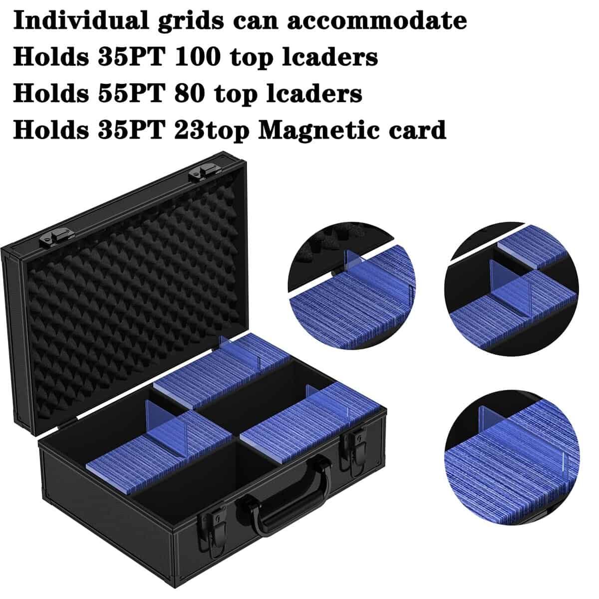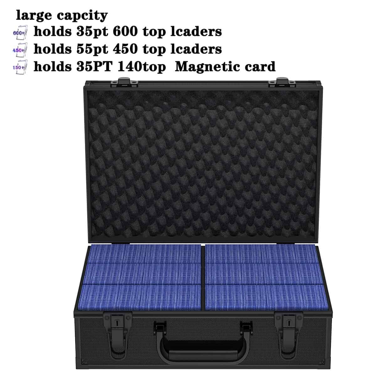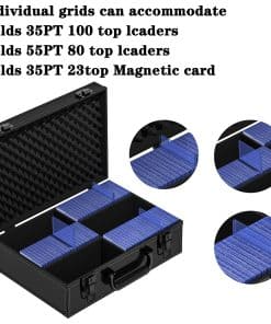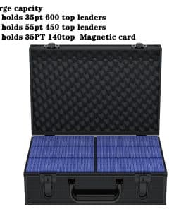 Caja de Almacenamiento VOKOKOYA Toploaders – Fits 3″ x 4″ 35pt-75pt Rigid Card Holders, Hard Aluminum Alloy Case, Collectible Cards and Sports Cards ((Holds 600+ Toploaders). Gran capacidad: Diseñado específicamente para top loaders, puede alojar múltiples de 600+35pt, 450+55pt, o 350+75pt top loaders. Los titulares de tarjetas magnéticas o carpetas de top loader pueden satisfacer las necesidades de colección de diferentes tipos de cartas. Protección y seguridad de toploader: Cada caja de almacenamiento de toploader viene con 6 separadores de cartas, equipados con asas, hebillas y llaves de seguridad para clasificar mejor tus cartas favoritas. Mantén tu tarjeta de transacción preciada en un estado nuevo, sin pliegues ni lágrimas. Material de toploader: en comparación con otras cajas de almacenamiento de toploader en el mercado, nuestra caja de almacenamiento de top loader utiliza una carcasa de plástico duro. La espuma EVA de alta densidad dentro de la caja es más sólida que otros materiales. Más duradero, con propiedades a prueba de polvo, a prueba de golpes y a prueba de humedad, garantizando un almacenamiento a largo plazo, manteniendo tu tarjeta de transacción preciada en un estado nuevo, libre de pliegues y lágrimas. Di adiós al toploader caótico: El amplio espacio de almacenamiento de top loader puede satisfacer tus necesidades de colección de toploader. Proporcione un excelente espacio de almacenamiento para tu toploader, recoge cartas y despídete de las cartas de transacción caóticas. Postventa: Si tienes alguna pregunta sobre la caja de almacenamiento de cartas, no dudes en contactarnos en cualquier momento. Nos comprometemos a proporcionar la mejor solución en un plazo de 24 horas