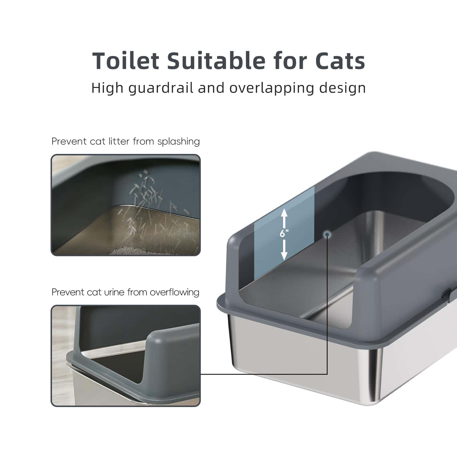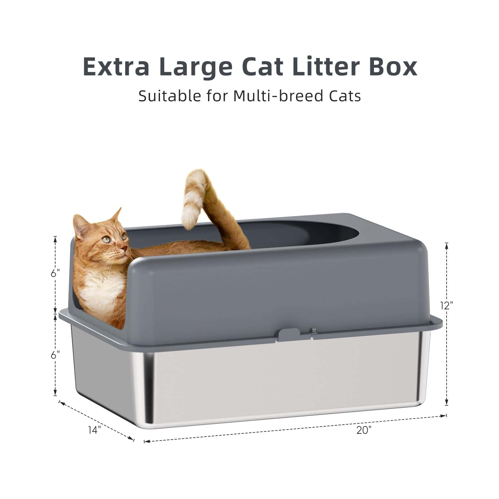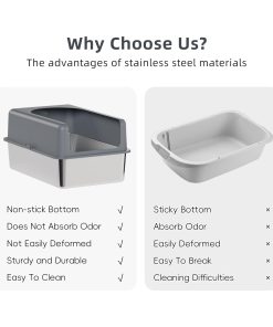 Caja de arena para gatos de acero inoxidable Booche de alta