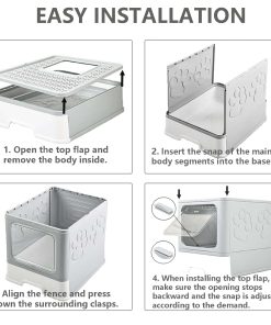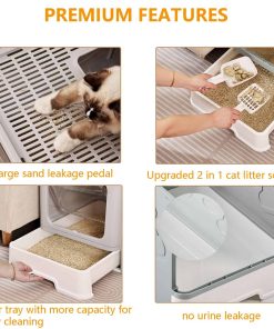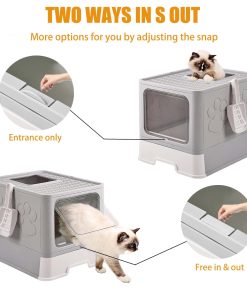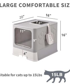 Nombre del producto: Caja de Arena Plegable para Gatos con Pala de Arena para Gatos Características del Producto: 1. Diseño de doble fuga de arena, tapa inclinada, la arena para gatos se desliza naturalmente en la bandeja con un solo toque; hay un pedal de fuga de arena delante de la caja de arena para gatos para evitar que la arena para gatos salga. 2. La parte superior de la caja de arena es una tabla de arena ondulada, que separa las garras del gato y protege las garras del gato de daños. 3. La caja de arena plegable es conveniente para la instalación. Tiene un gran espacio después de desplegarse, proporciona un ambiente de baño espacioso, cómodo y privado para tu gato. 4. La excelente bandeja de arena para gatos tiene un diseño con cajón, que facilita el acceso para la limpieza con la pala de arena para gatos y el cepillo. 5. Nuestra caja de arena grande está hecha de material PP de alta calidad para crear un entorno de vida portátil y resistente para gatos. 6. Caja de arena completamente cerrada con tapa más filtro de algodón antiolor, doble antiolor, evita que los olores salpiquen y mantiene el aire fresco, ayuda a los gatos en su crecimiento y desarrollo saludables. Especificaciones: Tamaño: 15.7″x17.3″x15.4″ pulgadas Tamaño Plegado: 15.7″x17.3″x6.1″ pulgadas Peso: 2.5kg/5.5lb Material: Material PP Color: Gris Oscuro Contenido del Paquete: 1 x Caja de Arena Plegable para Gatos con Tapa 1 x Pala de Arena para Gatos