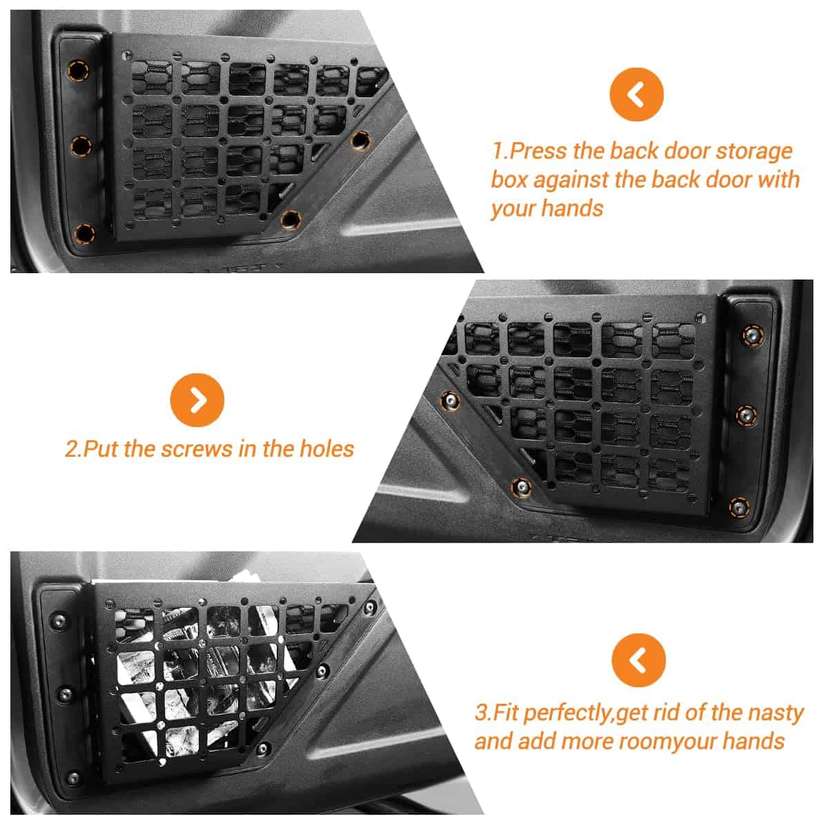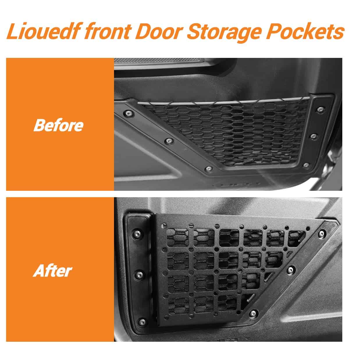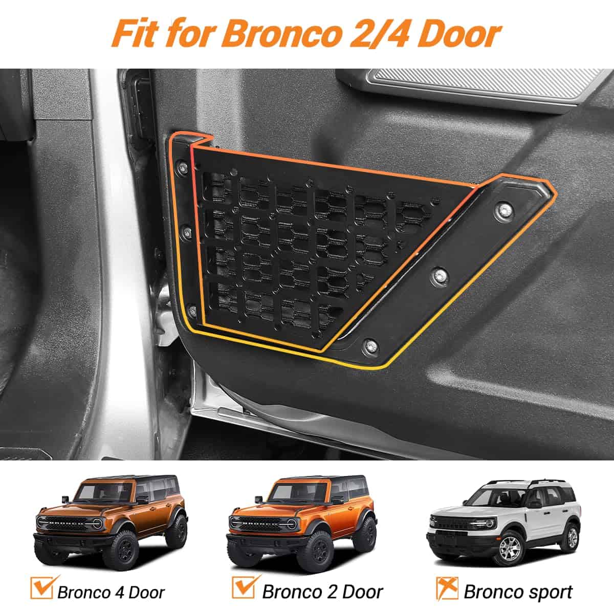 Caja de Bolsillos de Almacenamiento para Puerta Delantera con Portavasos Ajuste para Accesorios de Bronco, Caja Organizadora Lateral de Puerta Compatible con Bronco 2/4 Puertas 2021 2022 2023, Organizador de Almacenamiento Interior?2 Piezas?Es necesario mantener el interior de su vehículo limpio y organizado. Con esta Caja de Bolsillos de Almacenamiento para Puerta Delantera con Portavasos, podrá almacenar una variedad de artículos esenciales con facilidad. Con un diseño único y una construcción de alta calidad, este organizador de la puerta delantera será un complemento perfecto para su Bronco 2/4 puertas. Reemplace la malla original caída y útil con este innovador organizador de la puerta lateral. Hecho de acero recubierto de polvo negro de alta resistencia, este producto es duradero y confiable. Además, el diseño garantiza que las puertas funcionen sin interferencias, manteniendo la funcionalidad de su vehículo. Compre con confianza sabiendo que ofrecemos un servicio garantizado con una garantía de 1 año. No dude en ponerse en contacto con nosotros si tiene alguna pregunta. ¡Haga su pedido hoy mismo y mantenga su vehículo organizado y limpio!.