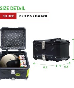 2. CAPACIDAD DE ALMACENAMIENTO DE 55L Tendrá un amplio espacio para almacenar su casco y otros equipos o artículos como ropa, zapatos o guantes.