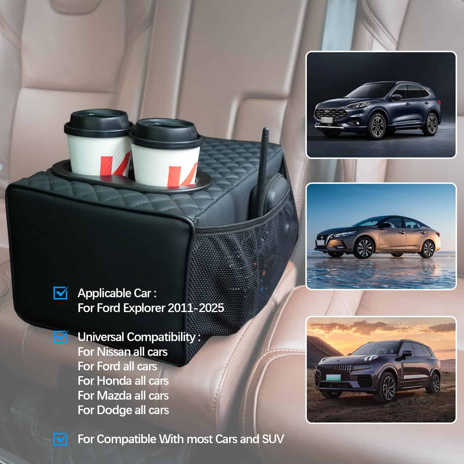 1. Aplicable a todos los vehículos Reposabrazos trasero de 2 filas compatible con Ford, Nissan, Mitsubishi, Honda, Mazda, Dodge, camionetas, Jeeps, SUV, etc. Diseñado ergonómicamente para proporcionar la altura de soporte más adecuada para sus codos, aliviando la presión de los viajes largos.