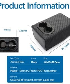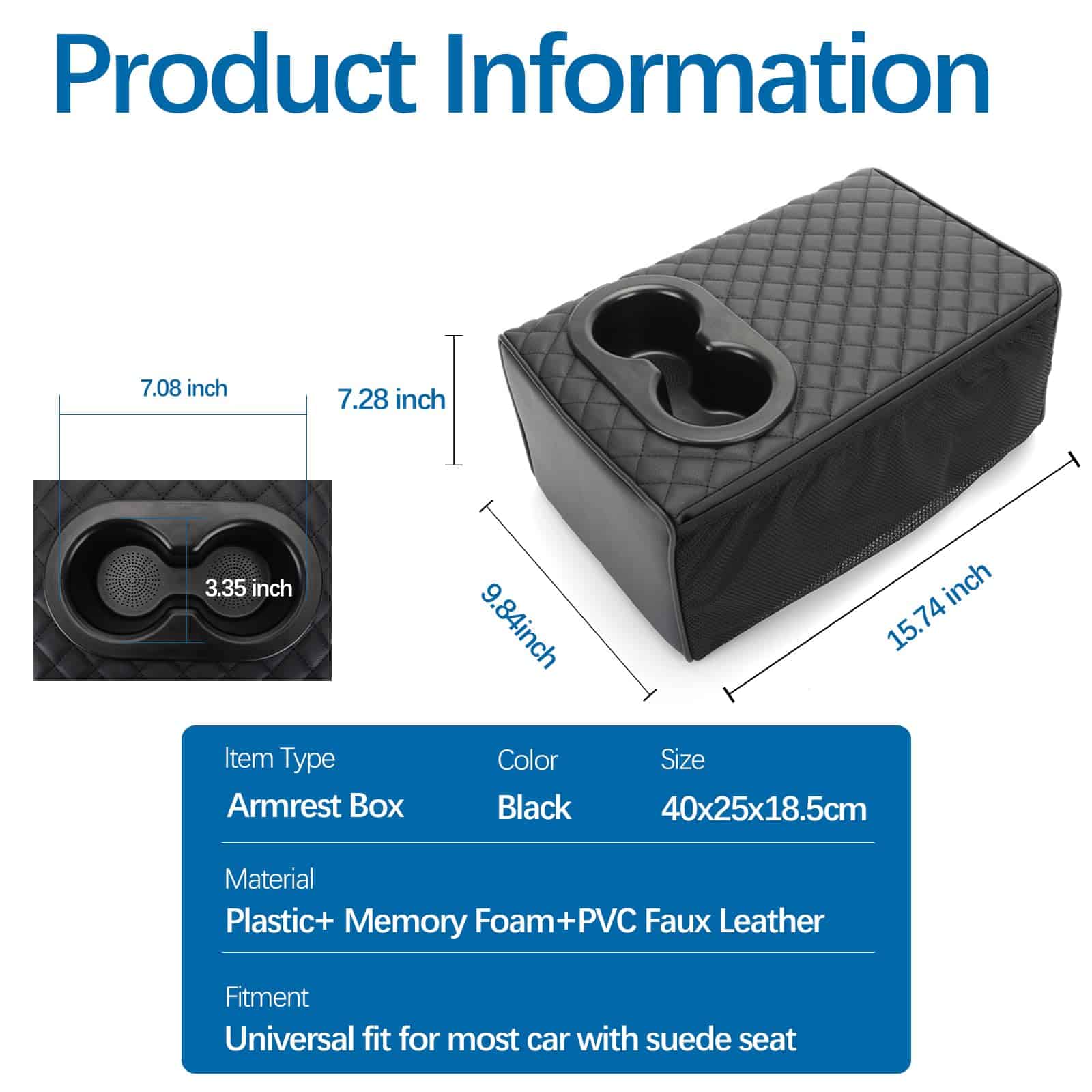 6. Servicio postventa Tamaño del producto: 15.74 9.84 7.28 pulgadas. Nota: Asegúrese de medir el tamaño de los asientos de la segunda fila de su automóvil antes de comprar. Si por alguna razón no está 100% satisfecho con su caja de reposabrazos central trasero de la segunda fila, contáctenos en un plazo de 30 días. Además, nuestro producto viene con una garantía de 12 meses. Compre sin preocupaciones.