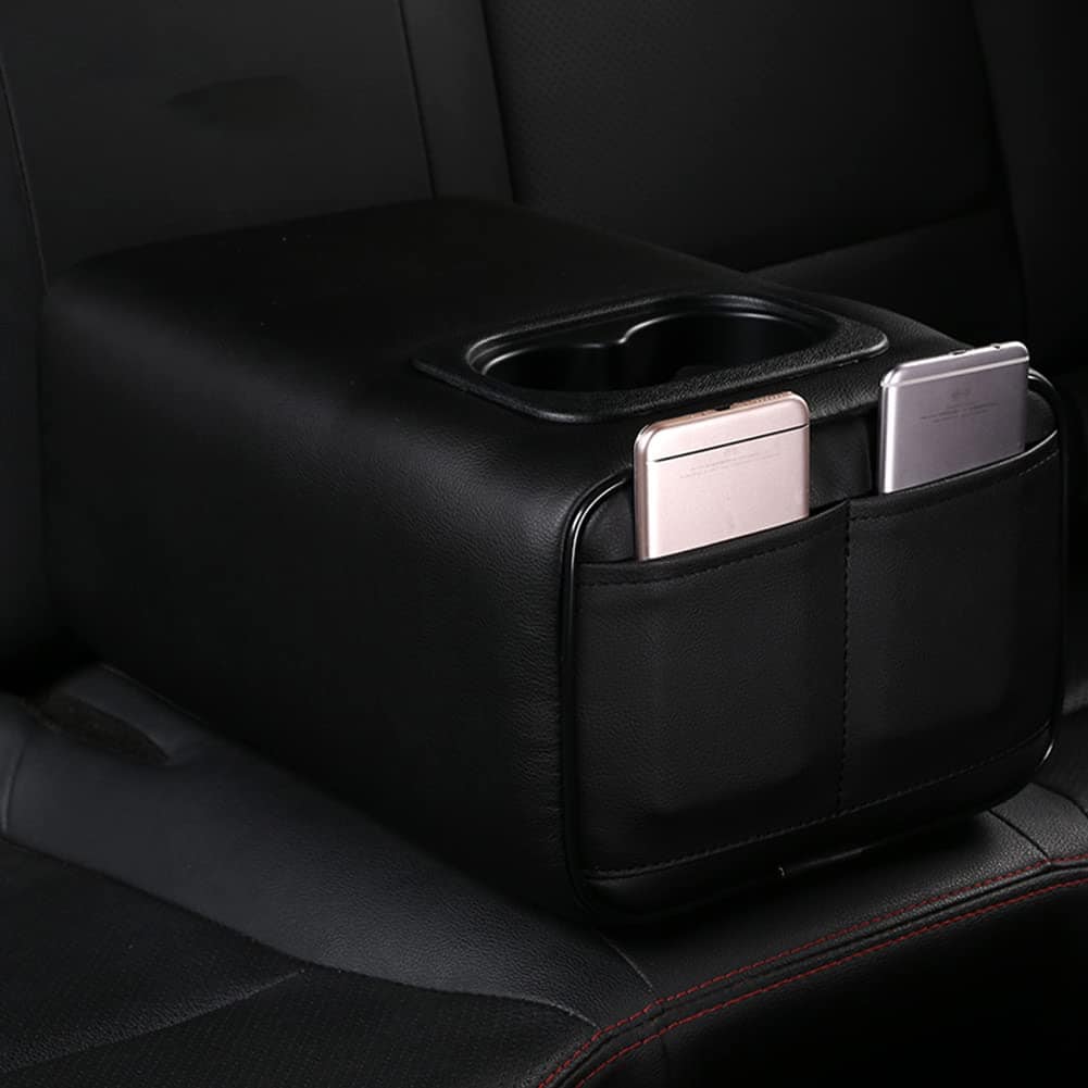 Para Ford todos los coches, para Nissan todos los coches, para Mitsubishi todos los coches, para Honda todos los coches, para Mazda todos los coches, para Dodge todos los coches, ¡se adapta a la mayoría de los coches y SUV! Diseño de Plástico + Espuma con memoria + Cuero sintético: se adopta cuero sintético de alta calidad y completamente envuelto, sin olor ofensivo, suave y cómodo, duradero, resistente a la abrasión, resistente al agua y función de absorción del sudor. Se ha adoptado el diseño de ribeteado, y se cosen dos hilos para hacerlo aún más sólido. Caja de reposabrazos central trasera de segunda fila con portavasos, reposabrazos para el tamaño: 15.74 x 9.84 x 7.08 pulgadas (longitud anchura altura). Se puede ajustar de acuerdo con la longitud de su propio asiento. ¡Fácil de instalar: almohadilla de consola central reposabrazos diseñada con dobles correas elásticas flexibles para que la fije en el asiento de la segunda fila, no necesita de ninguna herramienta, es realmente fácil de instalar la almohadilla de consola!