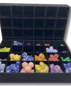 Embárcate en un viaje de proporciones épicas con nuestros accesorios premium de DnD d&d, el compañero definitivo para aventureros de mesa. Diseñado con atención meticulosa al detalle, este organizador es más que un simple almacenamiento, es un testimonio de calidad y estilo. Maximiza tu colección de D20 con dos bandejas desmontables que pueden contener hasta 960 dados, asegurando que cada pieza de tu tesoro se muestre en un esplendor incomparable. Cada bandeja cuenta con 24 espacios, que acogen incluso tu set de dados poliédricos más diverso. Disfruta de la envidia de otros jugadores mientras muestras con orgullo tu extensa colección, un testimonio de tu dedicación y pasión por el juego. La versatilidad es liberada con nuestro diseño innovador, que te permite transitar sin problemas de almacenamiento a juego. Cambia fácilmente entre mostrar tu preciada colección de dados y utilizar la caja como bandeja de rodaje. El plástico cristalino de la tapa ofrece una vista impecable de tus D20, mientras que los bordes de aluminio resistente garantizan durabilidad para infinitas aventuras de juego. Acoge calidad inigualable con nuestra caja premium de d and d. Confeccionado con bordes de aluminio duraderos y lados de plástico grueso, tus dados permanecen protegidos con estilo. Forrado con lujoso terciopelo, cada bandeja acuna tus preciosos D20 con el mayor cuidado. Eleva tu experiencia de juego con este organizador esencial de DnD, un faro de calidad y sofisticación. Enciende tu imaginación con nuestra solución de almacenamiento de dados todo en uno. Colócala erguida para mostrar con orgullo tu colección o llévala fácilmente a tu próxima sesión de juego con el resistente asa. Ya sea Dungeons, Dragons, Dice Organiser o cualquier otra aventura de mesa, nuestra caja versátil es tu compañera definitiva, permitiéndote desatar tu creatividad e inmersión en el mundo del juego.