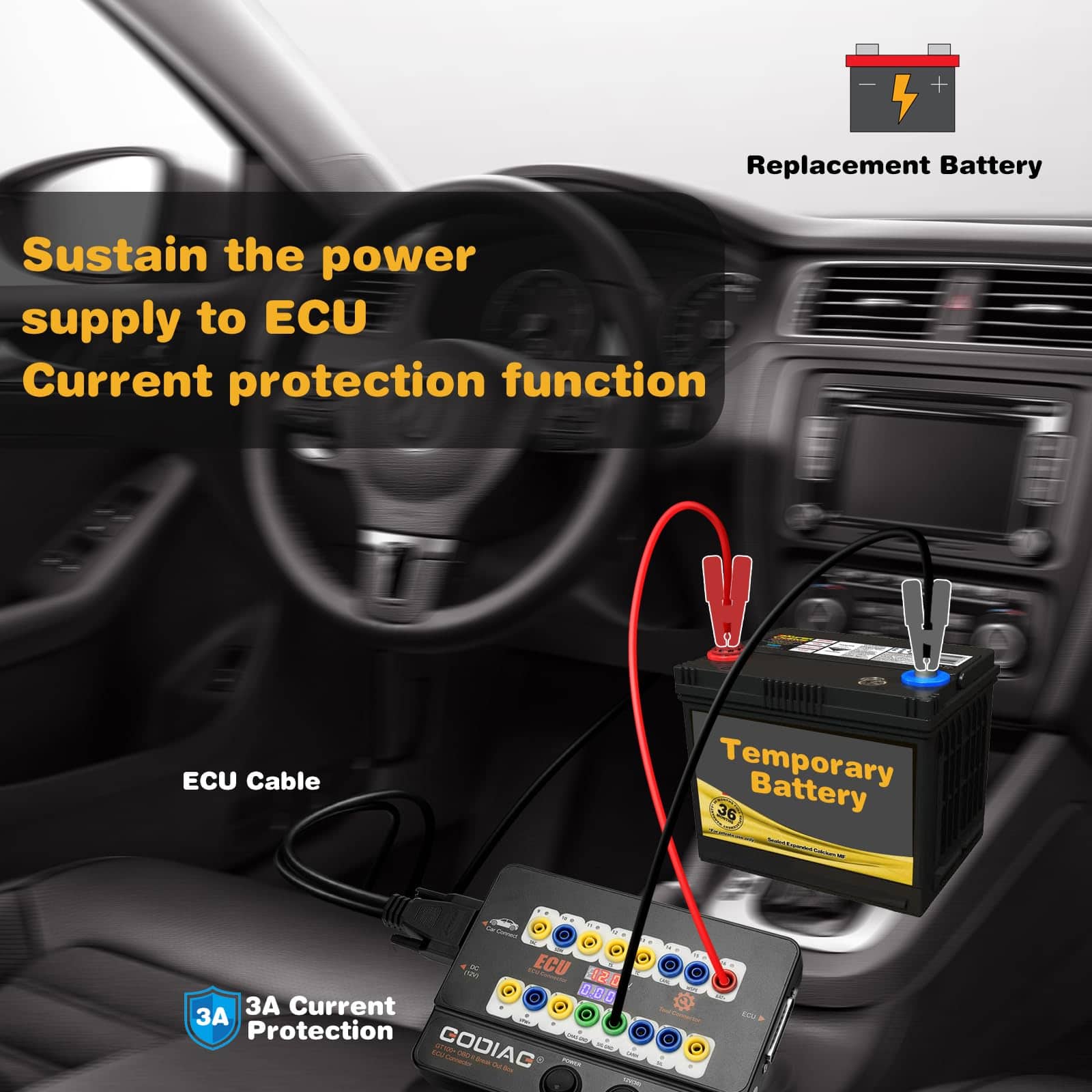 Voltaje y pantalla de corriente, convierte la interfaz OBD2 del automóvil en 16 pines para detección de señal y conversión de nivel eléctrico, Diagnosticar y programar para una sola ECU conectando la herramienta de diagnóstico o programador de ECU.