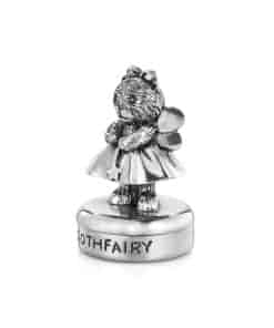 Con alas en la espalda y varita en mano, nuestro osito de peluche del ratón pérez de la colección Picnic de osos de peluche de Royal Selangor vigila sobre pequeños tesoros. Esta caja de dientes es perfecta para guardar los dientes caídos de los más pequeños, manteniéndolos seguros y conservados para conservar estos preciosos recuerdos. Hecha a mano con peltre de alta calidad, esta caja de dientes es un regalo encantador y duradero para cualquier niño. Dimensiones: Altura 2 pulgadas x Ancho 1 pulgada.