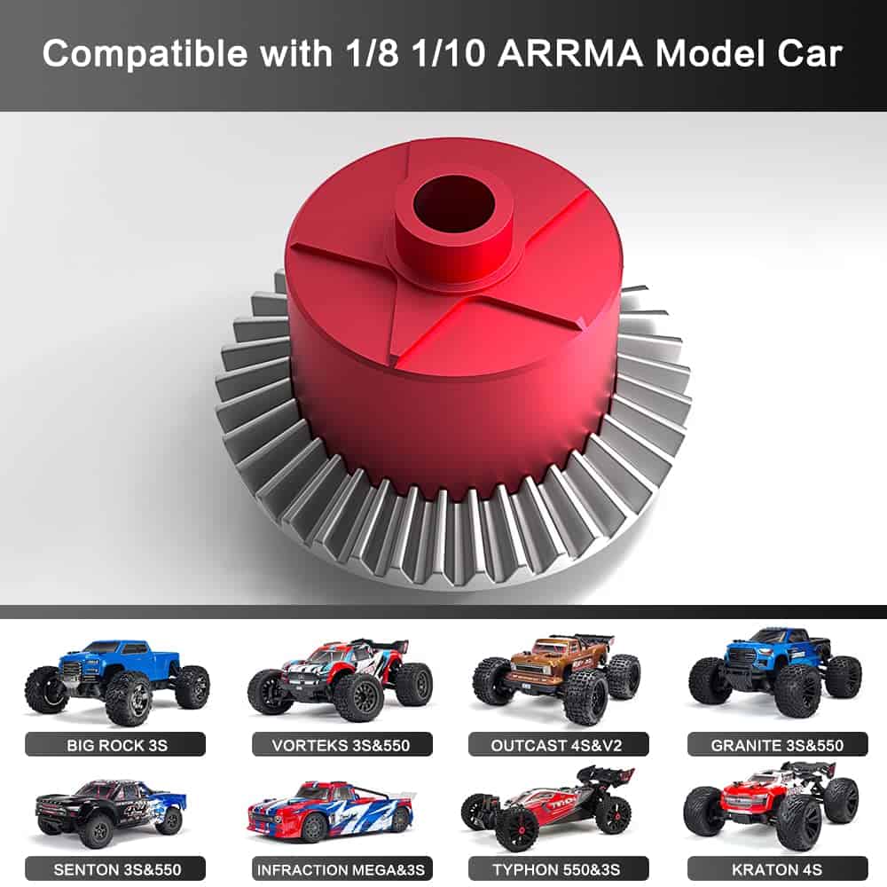 Especificaciones: Nombre del Artículo: Conjunto de caja de diferencial de 37T. Material: Acero y Aluminio. Color: Rojo. Compatible con: ARRMA SENTON 3S V3, GRANITE 3S V3, KRATON 4S, VORTEKS 3S, OUTCAST 4S V2, BIG ROCK 3S V3, TYPHON 3S, INFRACTION 3S y VENDETTA 3S. Lista de Paquetes: 1 caja de diferencial de 37T, 1 engranaje de entrada de 13T.