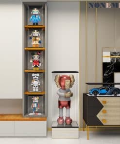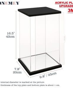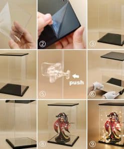 Nuestra caja de exhibición está fabricada con acrílico de alta calidad y cuenta con una luz de control remoto en la parte superior, lo que hace que tus coleccionables Bearbrick luzcan hermosos en la estantería. Adecuada para escritorio, mesa de oficina, tocador, mesa de noche para mostrar y organizar figuras, muñecas, coleccionables, cristalería y cualquier otra chuchería. Las dimensiones internas son 25x20x42cm. La caja de acrílico tiene puertas deslizantes que son fáciles de abrir para mantener la colección libre de polvo, reducir la exposición al sol y a los rayos ultravioleta, y retrasar el envejecimiento del plástico. La parte superior de la caja de acrílico está equipada con una luz de control remoto que se puede controlar para permanecer encendida o apagarse luego de 30 minutos. Además, cuenta con dos tipos de tiras de luz LED para mostrar mejor tus coleccionables. Fácil de armar, solo necesitas conectar los lados, la parte superior y el cabezal. Los bordes son suaves y la caja de acrílico encaja perfectamente en la base. Se puede mover fácilmente sin que se vuelque. Incluimos guantes desechables y un paño limpio para prevenir huellas dactilares y polvo. Recuerda quitar la película protectora de las capas en la superficie de acrílico antes de empezar a armar.