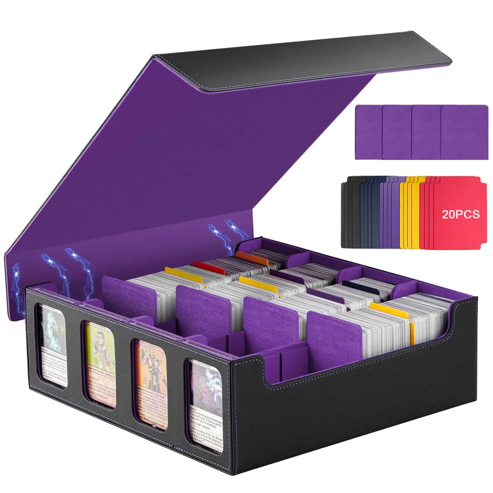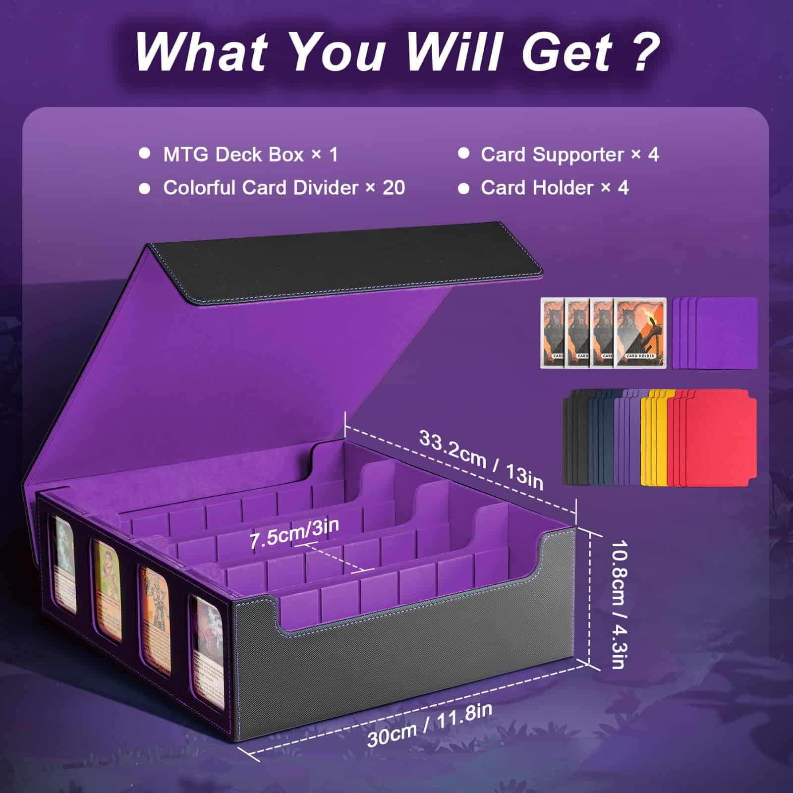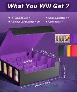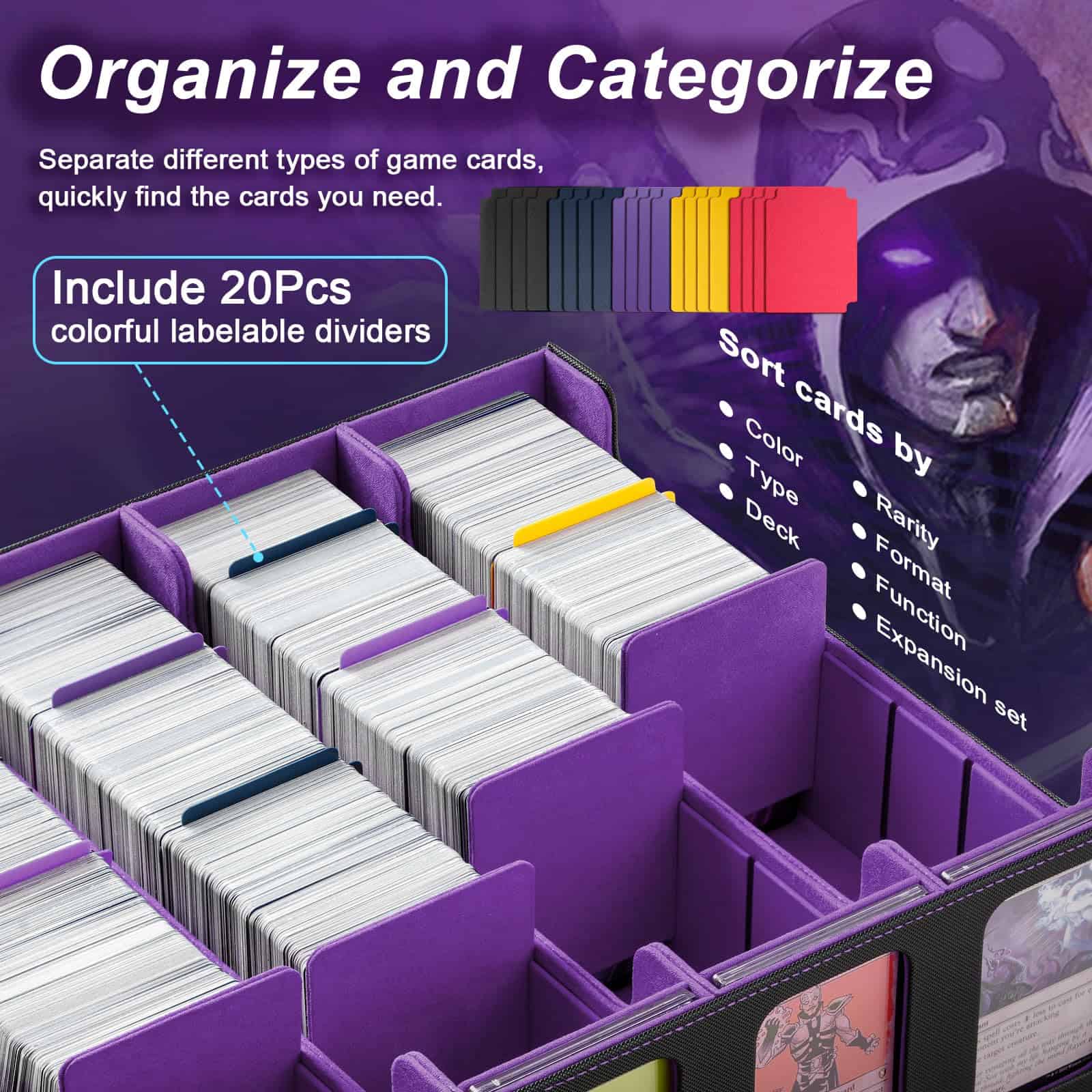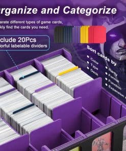3. Fácil de organizar con separadores coloridos: Esta caja de mazo mtg está equipada con 20 separadores coloreados etiquetables para organizar y categorizar fácilmente cartas y accesorios. Este diseño es perfecto para categorizar múltiples cartas, lo que te permite identificar y recuperar cartas rápidamente, ahorrándote mucho tiempo y aumentando la eficiencia. Tamaño de la caja de almacenamiento de cartas: 30 x 33.2 x 10.8 cm/11.8 x 13 x 4.3 pulg.