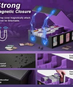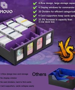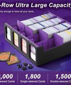 1. Capacidad para 3000 cartas sin funda: La caja de almacenamiento de cartas de intercambio ofrece mucho espacio y la caja de mazo de 4 filas ofrece un aumento del 33.3% en la capacidad que la caja de mazo de 3 filas estándar. Esta caja de almacenamiento de cartas de magia puede contener fácilmente más de 3000 cartas sin funda, 1800 cartas con una funda y 1500 cartas con doble funda, lo que la convierte en la solución perfecta para almacenar tu colección de cartas.