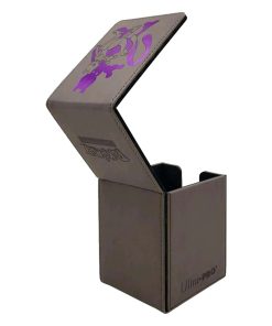 Material premium de piel sintética acolchada con contorno de personaje en relieve sobre un silueta de lámina morada. Capacidad para hasta 100 cartas de doble manga. Doble muescas para los dedos que facilitan el acceso a tus cartas. Un cierre magnético resistente asegura que las cartas estén guardadas de forma segura cuando no se usan.