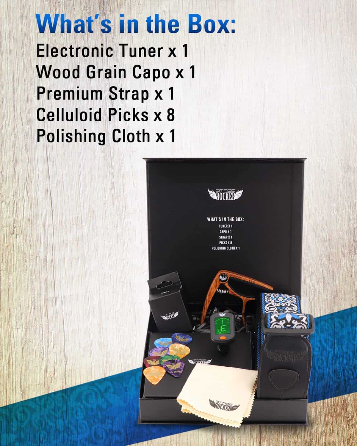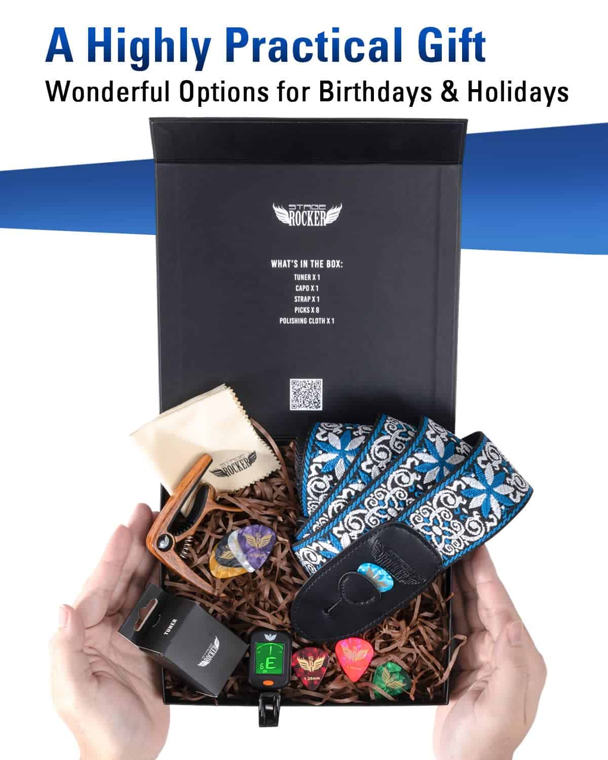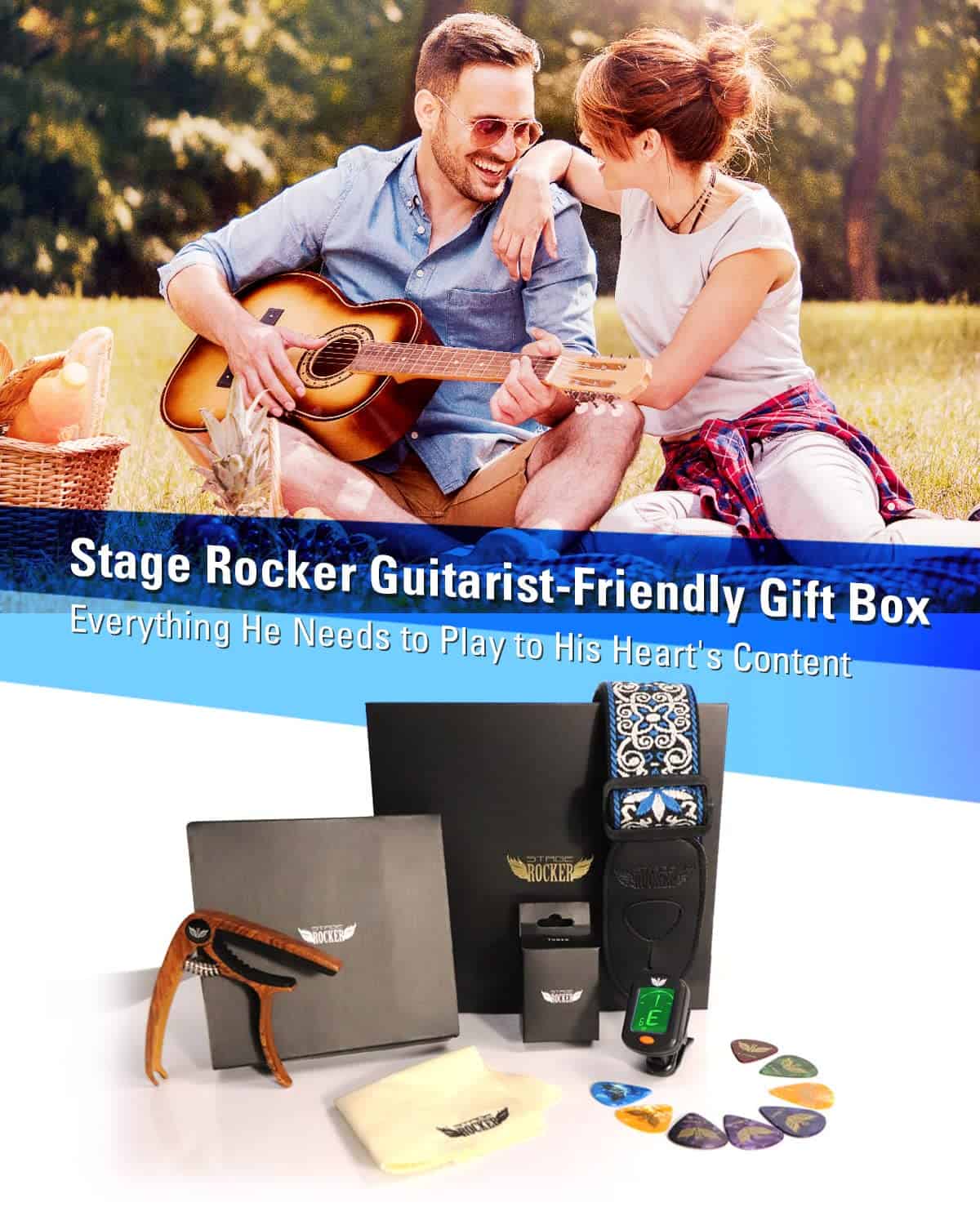 1. Una Opción de Regalo Reflexiva – La caja de regalo Stage Rocker incluye todos los regalos que mantienen a tus amigos y guitarristas motivados para aprender y tocar sus guitarras. Muchos entusiastas de la guitarra aprecian este paquete de accesorios como una opción de regalo práctica para varias ocasiones, incluyendo cumpleaños y días festivos!.