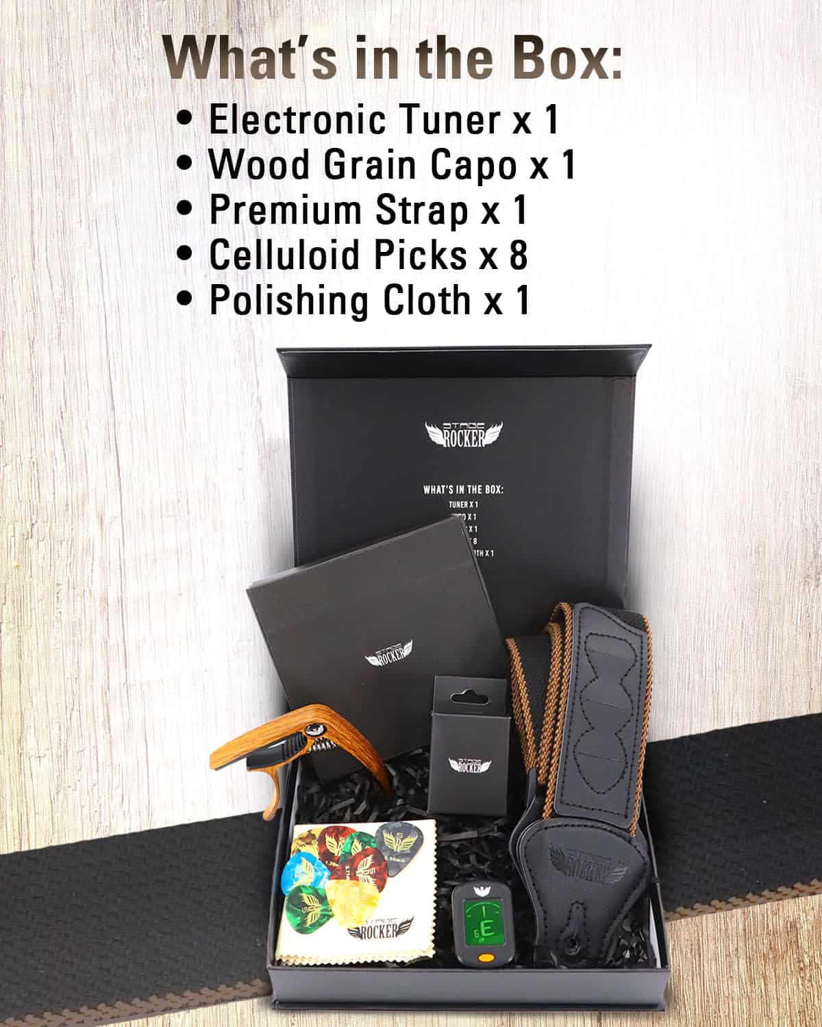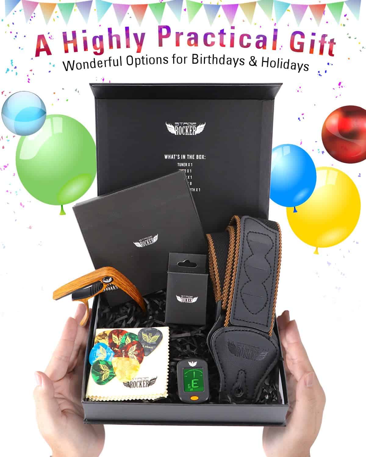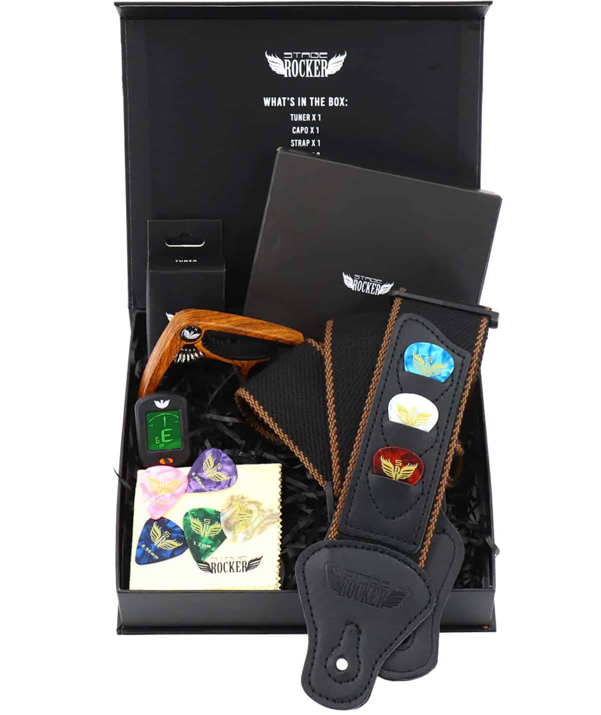 1. Un regalo ideal: la caja de regalo Stage Rocker incluye todos los accesorios que mantienen a tus amigos y guitarristas motivados para aprender y tocar sus guitarras. Muchos amantes de la guitarra reciben este set de accesorios como un regalo altamente práctico para cumpleaños y otras fiestas!.