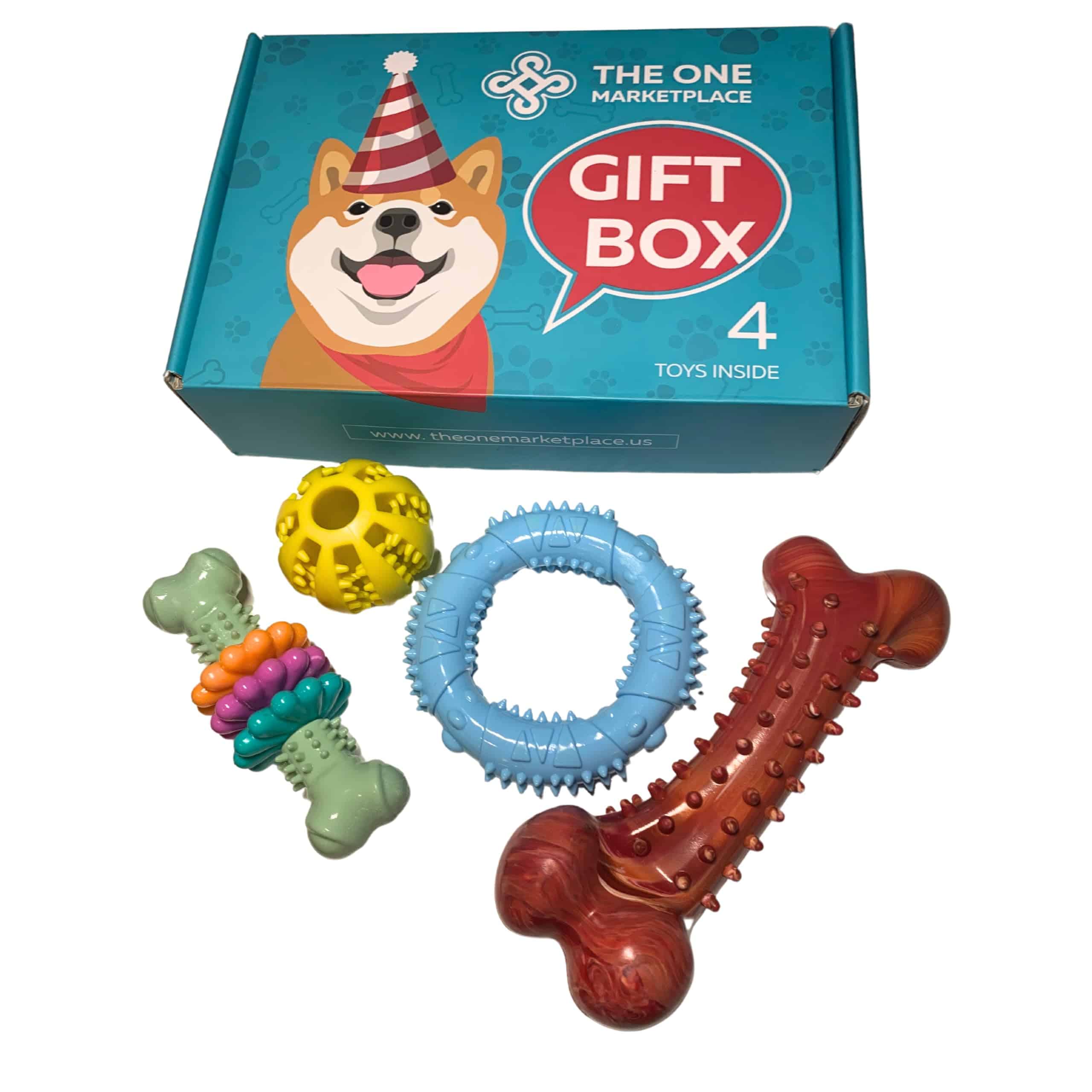 Presentamos nuestra línea premium de juguetes masticables diseñados específicamente para su amado compañero peludo, la Caja de Regalo de The One Marketplace. Nuestros juguetes masticables cuidadosamente diseñados están diseñados para satisfacer los instintos naturales de su perro mientras promueven la salud dental y proporcionan horas de entretenimiento. – Duradero y Seguro: Hechos de materiales resistentes y no tóxicos, nuestros juguetes masticables están diseñados para resistir incluso a los masticadores más entusiastas. Tenga la seguridad de que cada juguete se prueba cuidadosamente para garantizar que sea seguro para su mascota. – Beneficios para la Salud Bucal: Masticar es un comportamiento esencial para los perros, ayudando a mantener la higiene dental y reducir la acumulación de placa y sarro. Los juguetes de The One Marketplace ayudan a masajear las encías y mantener los dientes limpios, promoviendo la salud oral en general. – Texturas Variadas para Interés: Nuestros juguetes presentan una variedad de texturas, desde relieves hasta protuberancias, ofreciendo una experiencia masticatoria estimulante y placentera para su perro. Estas texturas ayudan a calmar las encías doloridas durante la dentición y mantienen el aburrimiento a raya. – Interactivo y Atractivo: Los juguetes de The One Marketplace están diseñados para mantener a su perro mentalmente comprometido y físicamente activo. Esconda premios o mantequilla de maní dentro del juguete para crear un desafío emocionante que capturará la atención de su perro. – Tamaño y Forma Perfectos: Disponibles en una variedad de tamaños y formas para adaptarse a diferentes razas y preferencias, asegurando un agarre cómodo y una masticación satisfactoria para perros de todas las tallas. – Fáciles de Limpiar y Mantener: Mantener la limpieza es pan comido con nuestros juguetes. Simplemente límpielos con agua y jabón suave para mantenerlos frescos y listos para la próxima sesión de juegos de su cachorro. Invierta en el bienestar y la felicidad de su perro con la Caja de Regalo de The One Marketplace. Proporciónales la experiencia de masticación definitiva, manteniéndolos entretenidos, sanos y libres del aburrimiento. ¡Su perro le agradecerá con colas moviéndose y momentos de juego alegres!