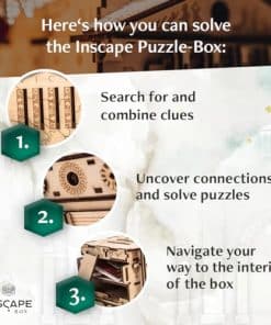 El Regalo Definitivo: Estas cajas de rompecabezas con compartimentos ocultos son un gran regalo para los amantes de los rompecabezas. Ya sea su cumpleaños, aniversario, Día de San Valentín, Pascua, o Navidad, asegúrate de sorprenderlos con un regalo único que nunca olvidarán. Después de haber resuelto la caja de rompecabezas de madera, ¡puedes volver a montar fácilmente la caja de rompecabezas y jugar de nuevo! Además, puedes usar estas cajas secretas para ocultar pequeños regalos o dinero para tus seres queridos. La caja también es adecuada para principiantes en rompecabezas y tiene un nivel de dificultad de 4.5 de 5. Hemos diseñado nuestros rompecabezas mentales para adultos como un viaje que te mantendrá alerta. Cada caja de INSCAPE esconde una moneda. Tan pronto como hayas resuelto 8 rompecabezas de INSCAPE, puedes convertir las monedas en un rompecabezas nuevo y emocionante
