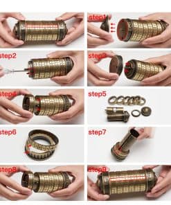 4. Configura las letras de acuerdo con la contraseña que desees, y alínealas con la ranura interna de cada anillo de contraseña. Ensambla.
