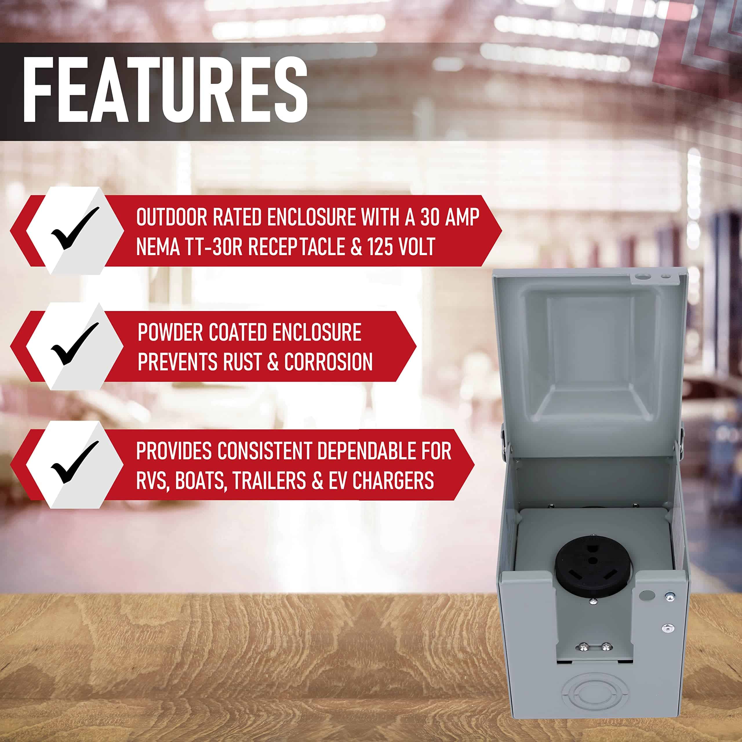 Caja de Salida de Corriente de 30 Amperios y 125 Voltios,