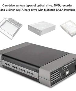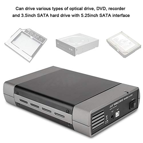 Especificación: Tipo de artículo: Caja de unidad óptica Rendimiento principal Tipo de interfaz: USB2.0 Soporta interfaz SATA de 5.25 pulgadas para todo tipo de unidades ópticas, DVD soporta discos duros SATA de 3.5 pulgadas Lista de paquetes: 1 X Caja de unidad óptica 1 X Manual del usuario 4 X Tornillo 1 X Cable USB 1 X Adaptador 1 X Cable de alimentación