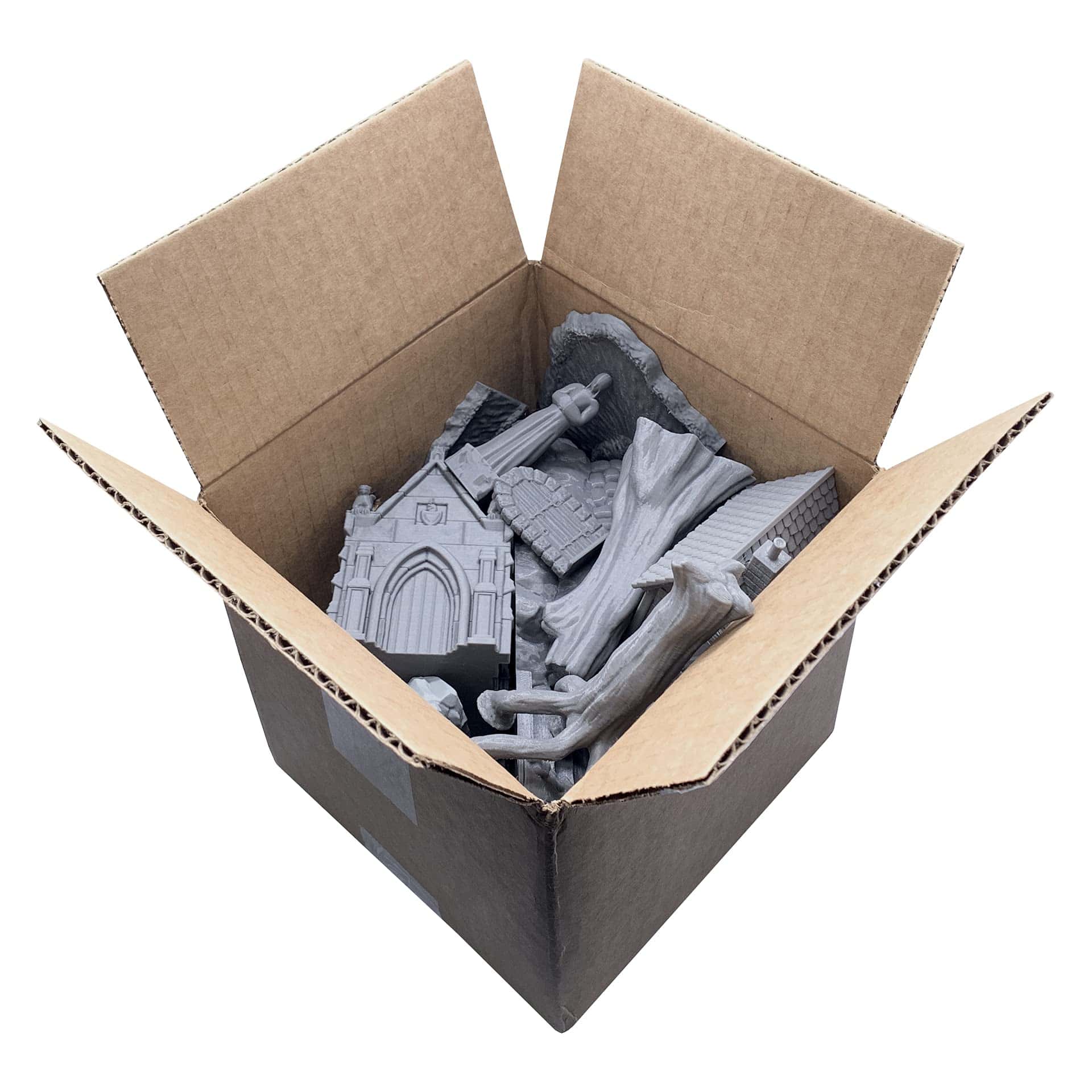 Nuestras cajas de valor contienen impresiones 3D que no cumplieron con nuestro estándar más alto. La calidad general es buena pero puede requerir un poco más de cuidado para lograr el mejor aspecto estético. Aunque hacemos todo lo posible para que cada paquete sea cohesivo, debido a limitaciones en el inventario disponible, es posible que se incluyan edificaciones incompletas o partes desiguales.