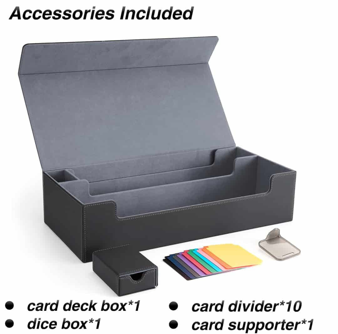 Esta caja para mazos Venssu MTG Deck Box es una solución completa de almacenamiento y transporte para tus cartas de juegos favoritas. Con capacidad para 5 cajas pequeñas de cartas con visualizador, puedes llevar hasta 5 mazos comandantes contigo a tus torneos y eventos de juego. La caja también cuenta con un compartimento para guardar accesorios esenciales como dados, contadores de daño y fichas adicionales. Además, el diseño innovador del soporte de cartas garantiza que tus valiosas cartas permanezcan en perfectas condiciones, sin doblarse ni caerse. Con 10 separadores coloridos incluidos, puedes organizar tus cartas fácilmente y encontrarlas rápidamente durante tus partidas. Compatible con una amplia variedad de juegos de cartas, esta caja de almacenamiento es perfecta para los coleccionistas y jugadores de TCG que desean mantener sus cartas seguras y protegidas. Fabricada con una carcasa de cuero PU resistente y un interior de microfibra suave, esta caja de alta calidad garantiza una protección óptima para tus cartas mientras estás en movimiento. ¡Hazte con la caja para mazos Venssu MTG Deck Box y lleva tus cartas a donde sea que vayas con estilo y seguridad!