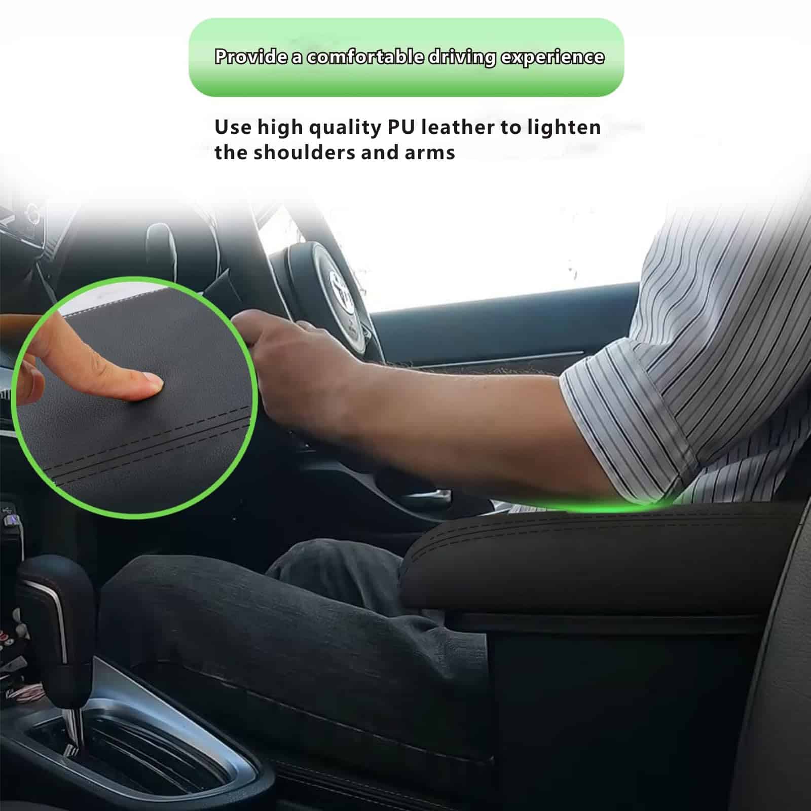4. Alta calidad: La caja reposabrazos está hecha de cuero PU suave y plástico ABS duradero, conveniente para colocar el codo cómodamente y descansar el brazo, aliviando la fatiga al conducir.