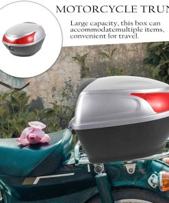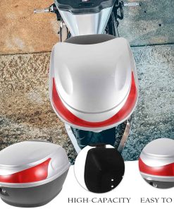 Caja Trasera de Raqueta para Moto de 25L, Baúl de Almacenamiento con Cerradura para Casco de Moto, Resistente al Agua. Gran capacidad interna de 25L, cumple con tus necesidades diarias de viaje. Correas de Link de tracción enlazan la base y la cubierta que pueden reducir eficazmente la vibración durante la conducción. Gancho de cerradura de seguridad, seguro y antirrobo, fácil de usar, ¡buena calidad! Luz de advertencia nocturna, el Reflector Rojo Brillante Nocturno hace que los viajes nocturnos sean más seguros. Adecuado para la mayoría de los scooters, motocicletas, motonetas con un bastidor estándar.