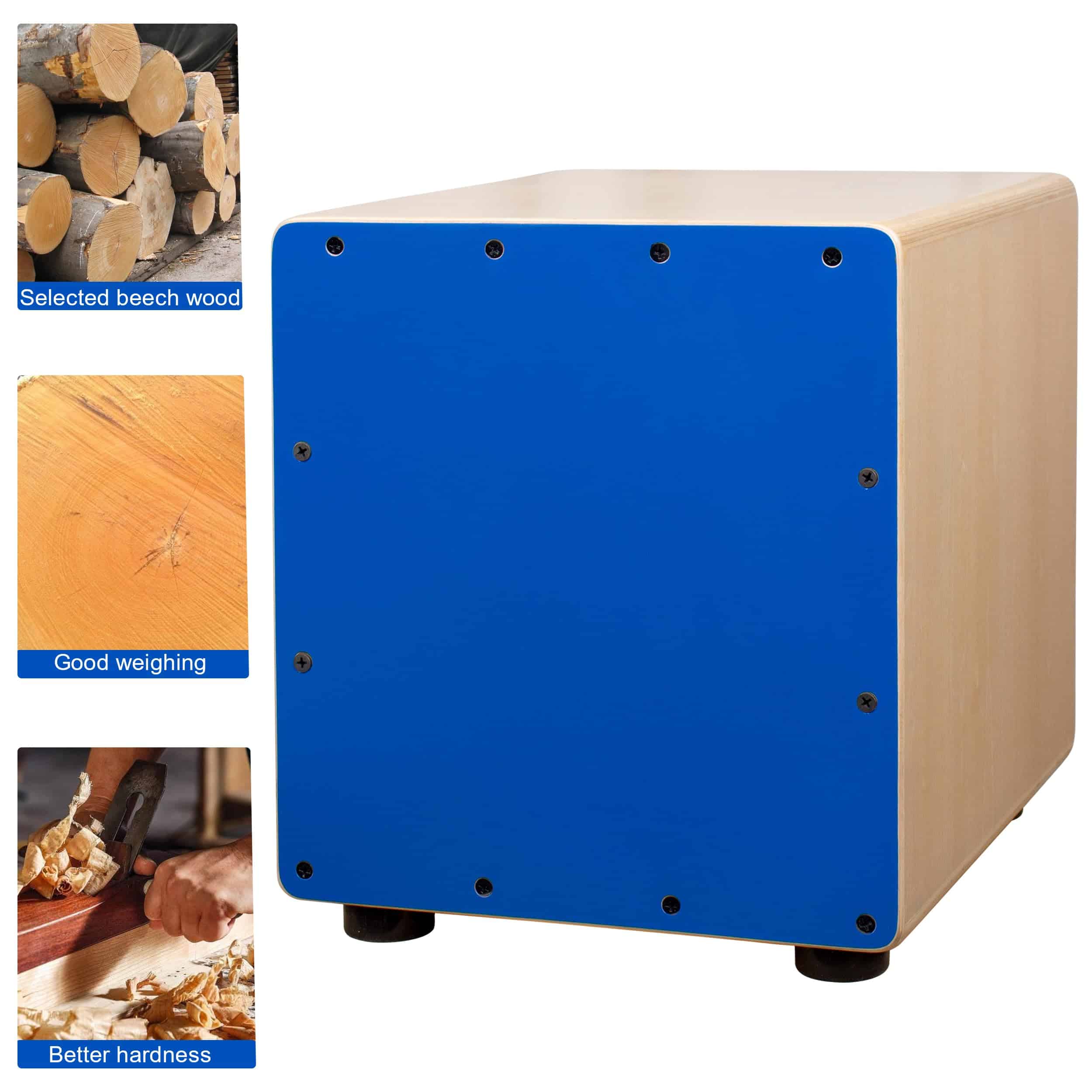 1. Sonido Claro Con 4 pies de goma para aislar las vibraciones del piso y amortiguar el sonido de los tambores de cajón, el cajón es ideal para círculos de cantautores, sesiones de improvisación y para acompañar bandas acústicas en entornos pequeños e íntimos.