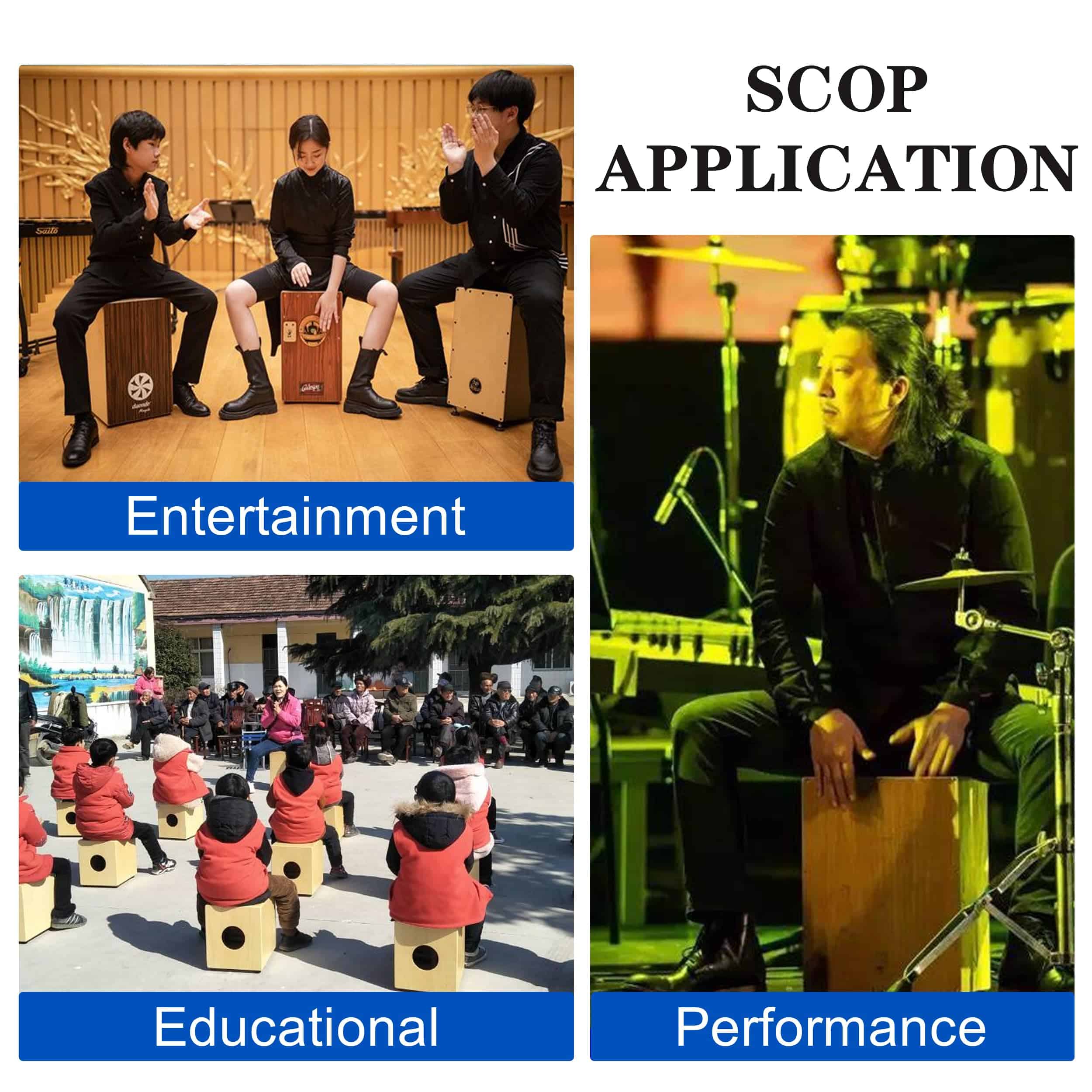 4. Amplia Compatibilidad Ya sea que estés viajando, en casa, en fiestas, en actuaciones de banda, en picnics, en lugares pequeños, en actuaciones callejeras, etc., este Cajón puede animar tu estado de ánimo y hacerte divertir.