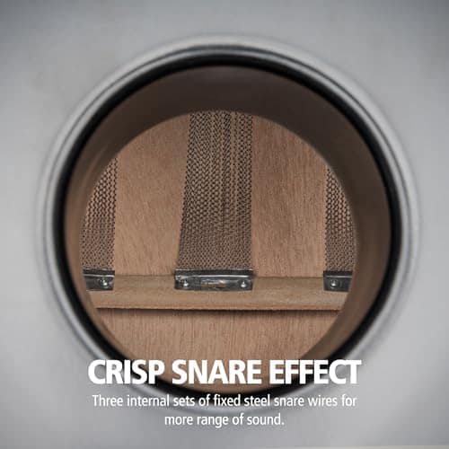 Un agujero de sonido portátil instalado en fábrica que proporciona un bajo extra profundo que llena la habitación. Viene con tres juegos de cables de sordina fijos internos para darle a tu sonido un pop crujiente. La hermosa superficie de madera dura responde a dinámicas suaves y tiene un impacto en volúmenes más altos; el cuerpo de composite moderno y resistente resuena con proyección total y tono cálido. El puerto está permanentemente asegurado para obtener el sonido de bajo más grande. No interfiere con los micrófonos y no requiere ajustes. El cajón Meinl Jumbo Backbeat mide 13″ W x 21 1/4″ H x 13″ D y pesa 12.2 lbs. Se considera de tamaño jumbo y es más grande que nuestros cajones tradicionales para un bajo más profundo. Puedes tocarlo junto a guitarras en espectáculos acústicos, con música de adoración, en el estudio, o en jam sessions al aire libre. Cuatro pies sólidos de silicona mantienen el cajón estable, evitan arañazos y eliminan vibraciones en cualquier superficie. Meinl es un fabricante de instrumentos musicales de propiedad familiar y marca establecida en 1951 en Alemania. Nuestros expertos diseñadores alemanes tienen relaciones profundas con nuestros constructores para garantizar que te entreguen la mejor calidad absoluta.
