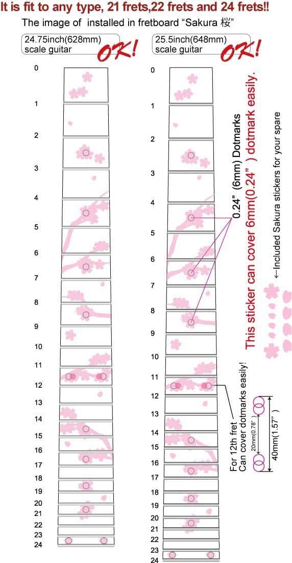 ¡Parecen incrustaciones REALES! ¡Fácil de aplicar y quitar! ¡Las calcomanías Inlay son SUPER-DELGADAS y Removibles! ¡Puedes modificar tu guitarra tan fácilmente! ¡No se engancharán con tus dedos mientras tocas! Es posible utilizar spray de facilidad para los dedos o aceite de limón después de aplicar las calcomanías. No quedará ningún adhesivo después de pelar la calcomanía.
