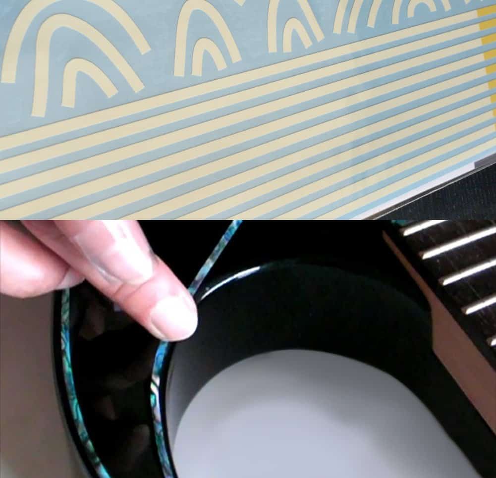 ¡Parecen incrustaciones REALES! Fáciles de aplicar y quitar. ¡Las Calcomanías Inlay son SUPERFINAS y Removibles! ¡Puedes modificar tu guitarra tan fácilmente! ¡No se engancharán con tus dedos mientras tocas! Es posible usar un spray de finger ease o aceite de limón después de aplicar las calcomanías. No quedará ningún residuo de adhesivo después de retirar la calcomanía.